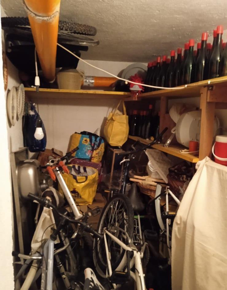 Piena ed intera proprietà di un appartamento al piano secondo, composto da cucina, soggiorno, ripostiglio, camera ed un bagno con annessi pertinenziali cantina e box autorimessa a piano interrato.