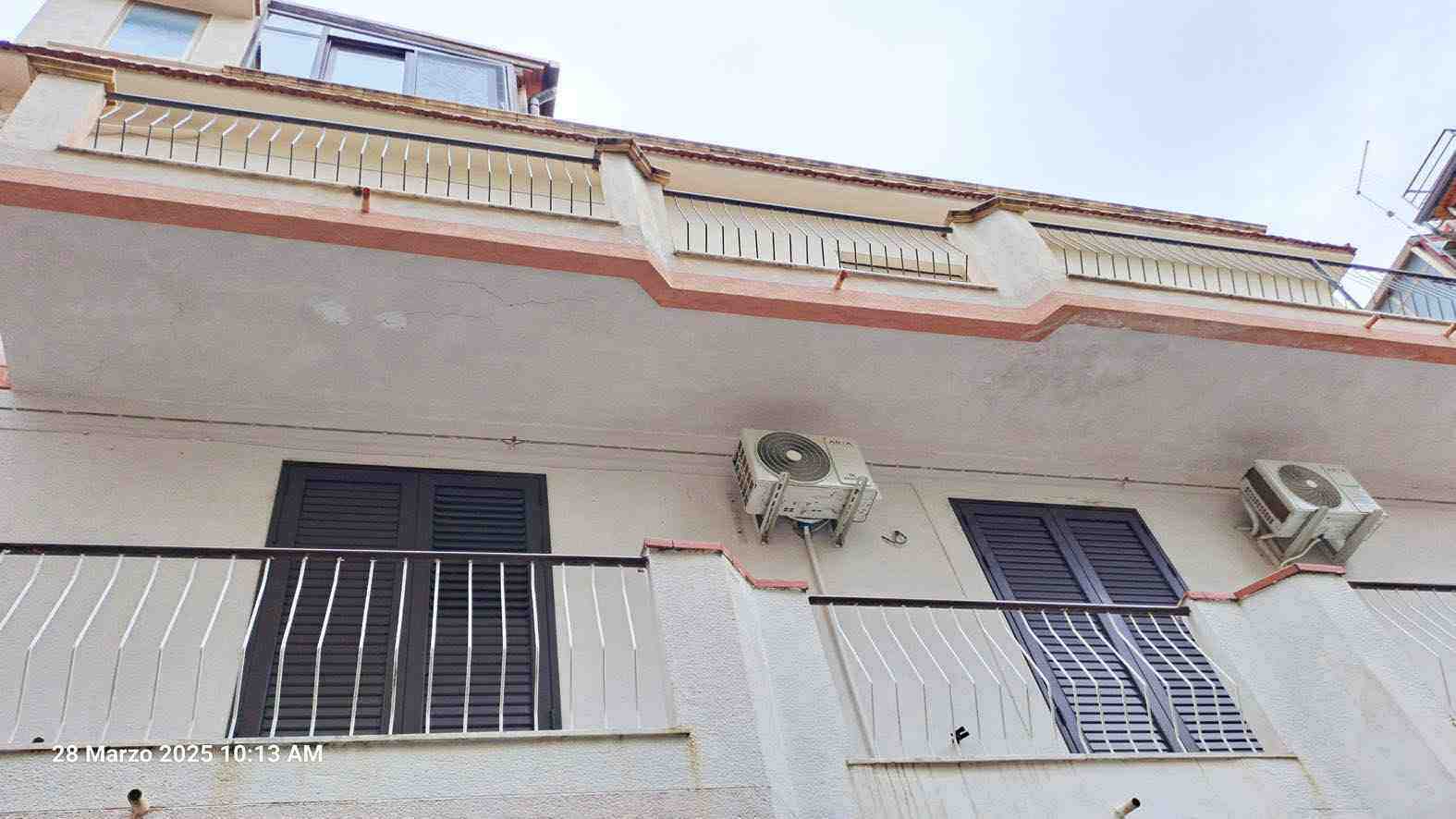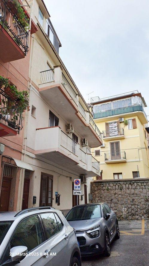 Piena proprietà dell’appartamento, piano 2 e 3, composto da ingresso salone-soggiorno, corridoio disimpegno, 2 camere da letto singole, doppio servizio, 1 camera da letto matrimoniale, un ripostiglio, un balcone. Dalla scale interna si accede al terrazzo di cui una parte risulta chiusa con struttura in legno ed infissi in vetrocamera, spazio interno adibito a cucina soggiorno e ripostiglio. La restante parte della superficie è costituita dal terrazzo scoperto