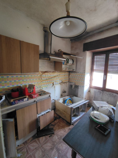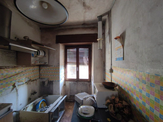 Appartamento al 1° piano facente parte di un vecchio stabile per il quale non risulta essere costituito un condominio. L’appartamento risulta con affaccio principale (ex soggiorno, cucina e due camere) orientato ad est verso via Unico, mentre una camera, il bagno ed il balcone si affacciano ad ovest ed a sud verso il cortile interno. L’alloggio è composto quindi da: un balcone, un bagno, un disimpegno, una cucina e quattro locali.