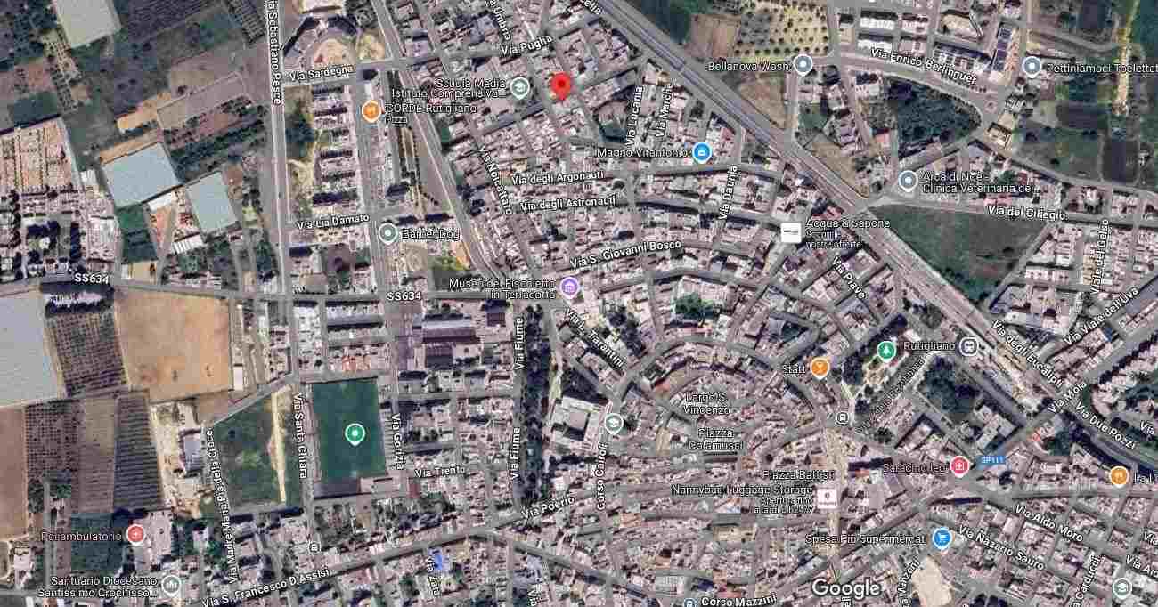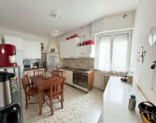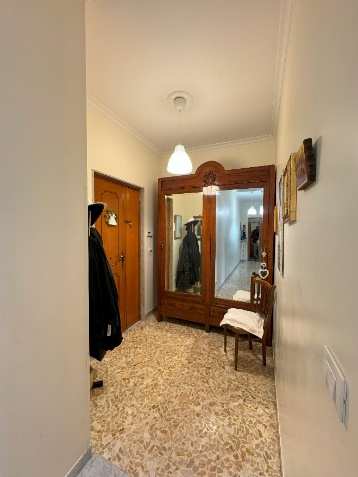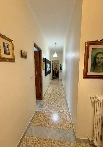 Abitazione posta al piano primo e composta dal vano ingresso, dal soggiorno, dalla cucina, dal disimpegno, da due ripostigli, da tre camere da letto e dal bagno, oltre a due balconi. Superficie catastale 95 mq. Pertinenziale locale ad uso deposito al piano terra, della superficie di circa 31 mq