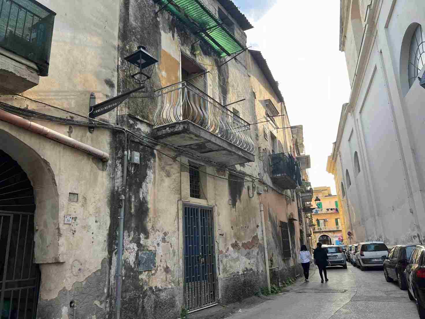 Piena ed intera proprietà di compendio immobiliare in Acerra Via Filomarino n.14 composto da un vano al piano terra, con accesso sia dalla strada che dal cortile interno, due vani al primo piano, disimpegnati da scala e ballatoio con accesso dal cortile interno, di cui uno collegato a mezzo di una scala interna al predetto vano terraneo; completano la consistenza del lotto due soprastanti ambienti sottotetto privi di accesso e due ulteriori piccoli manufatti terranei posti nel citato cortile interno.