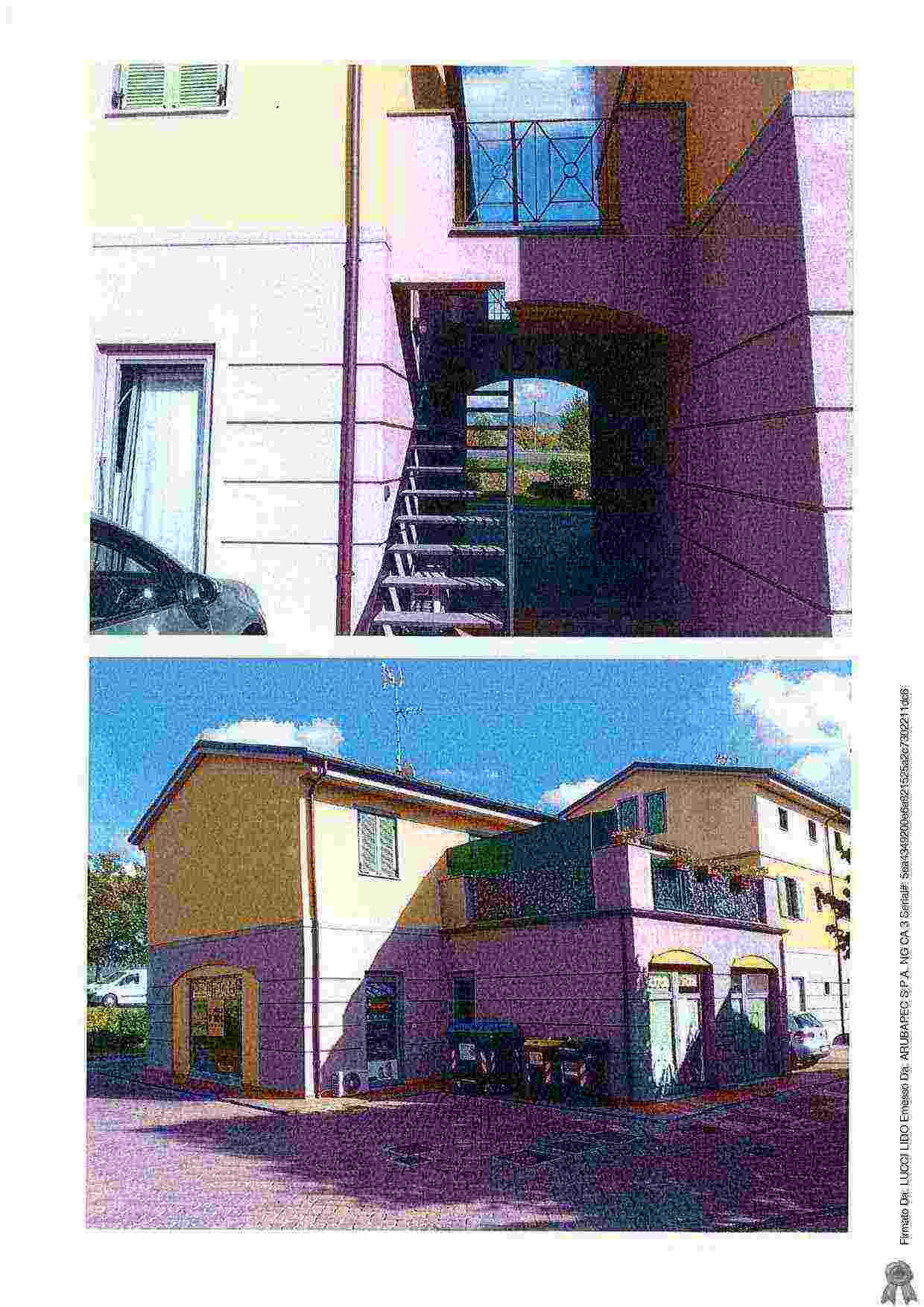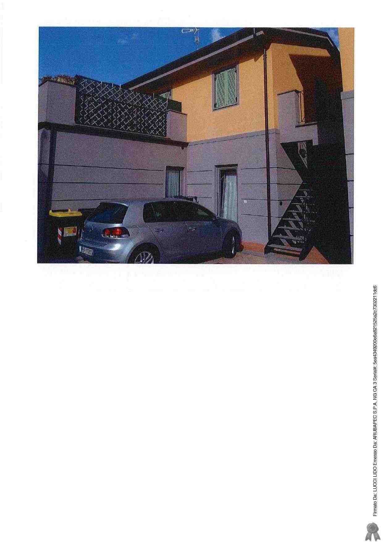 Piena proprietà di porzione immobiliare ad uso di civile abitazione al piano primo di un edificio di più ampia consistenza, accessibile mediante scala condominiale esterna, composto da soggiorno con angolo cottura, bagno, camera, disimpegno e balcone, corredata da due distinti posti auto scoperti, nonché comproprietà per la quota di 2/12 di varie utilità comuni come esattamente descritto in elaborato peritale ed avviso di vendita.