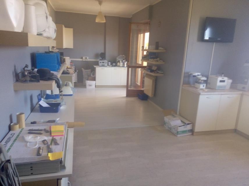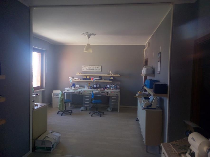 Carrù, Via delle Scuole Medie 5, Scala C, Condominio Tre Stelle, piano 2°, laboratorio composto da: locale per attività, ufficio, ufficio/magazzino, disimpegno, bagno; serramenti in legno a vetro semplice; riscaldamento condominiale centralizzato a gas metano. Acqua calda sanitaria garantita da C.T. comune. Impianto elettrico sottotraccia, salvavita. Cantina a piano seminterrato e garage in corpo separato. Occupato da soggetto terzo in forza di contratto di locazione opponibile (scadenza disdetta: 31.10.29)