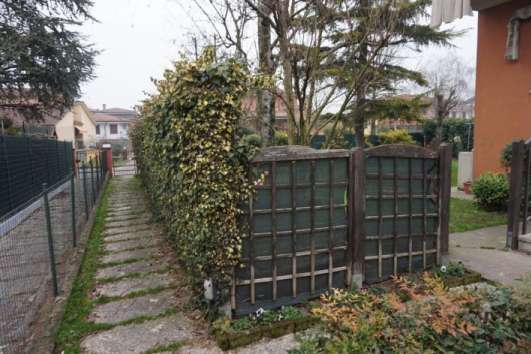 Proprietà di appartamento facente parte di villetta bifamiliare, distribuito ai piani seminterrato, rialzato e primo, con autorimessa e annessa area cortiliva.