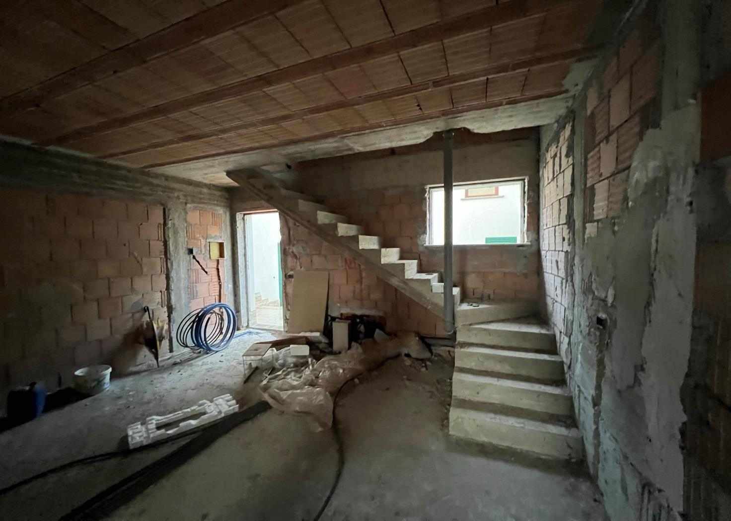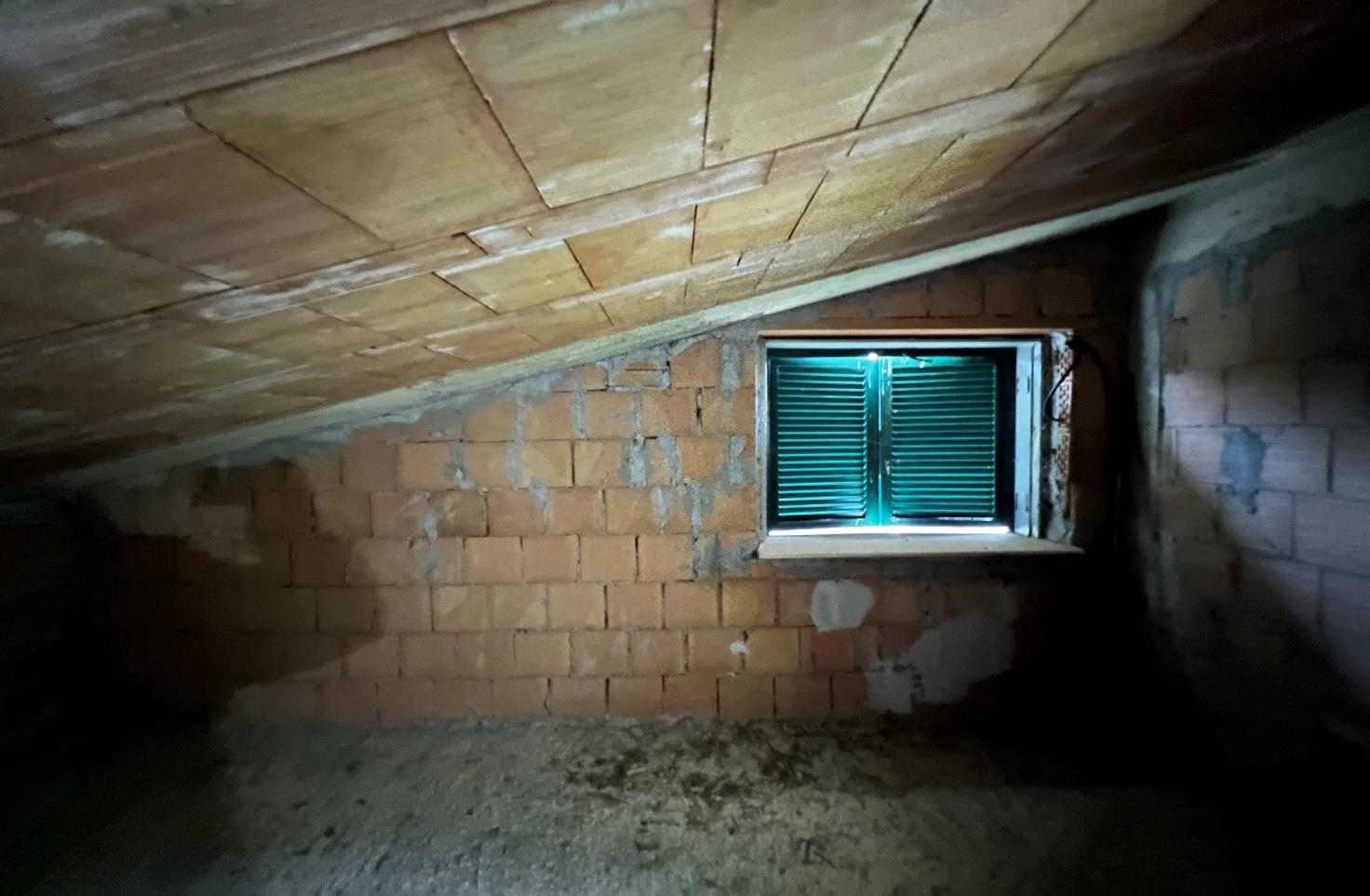 Abitazione allo stato di rustico al piano primo con soggiorno/angolo cottura, un disimpegno ed un bagno, e al piano secondo attraverso un disimpegno, una soffitta. un lavatoio ed un ripostiglio; completano la descrizione un balcone al piano primo. Il tutto per una superficie utile lorda complessiva di 44,00 mq per l'abitazione al piano primo, 38 mq per la soffitta e 8,20 mq per il balcone al piano primo. Nel lotto risultano essere ricompresi il posto auto sub. 27 e l’ente urbano sub. 34.