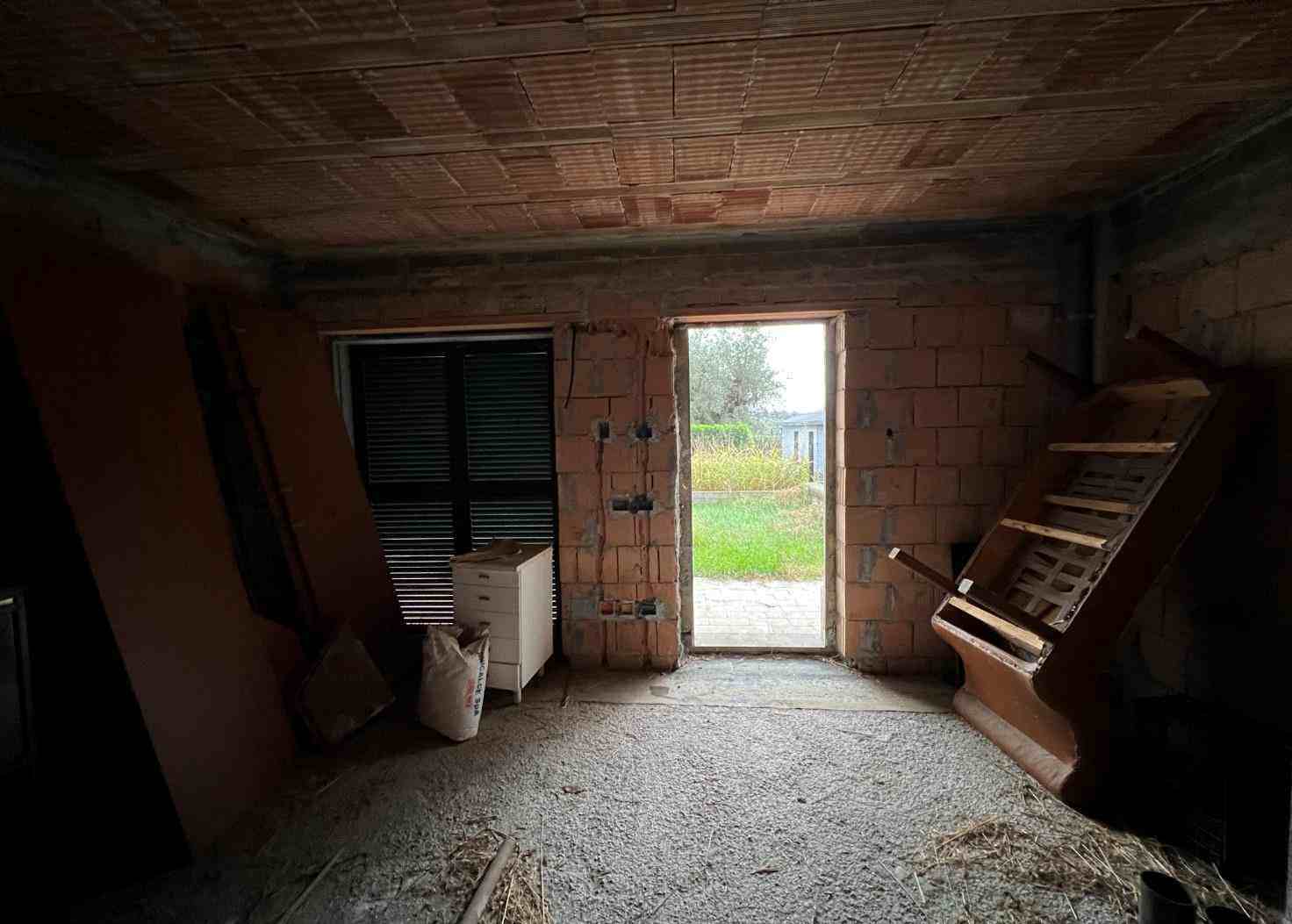Unità immobiliare monolocale ad uso abitativo distribuita allo stato di rustico funzionalmente distribuita interamente al piano terra attraverso un soggiorno/angolo cottura/letto, un disimpegno ed un bagno; completa la descrizione una corte esclusiva cui si accede per il tramite di un cancelletto pedonale aperto su uno spazio di passaggio comune. Il tutto per una superficie utile lorda complessiva di 44,00 mq per l'abitazione e di 38,00mq per la corte pertinenziale esclusiva.