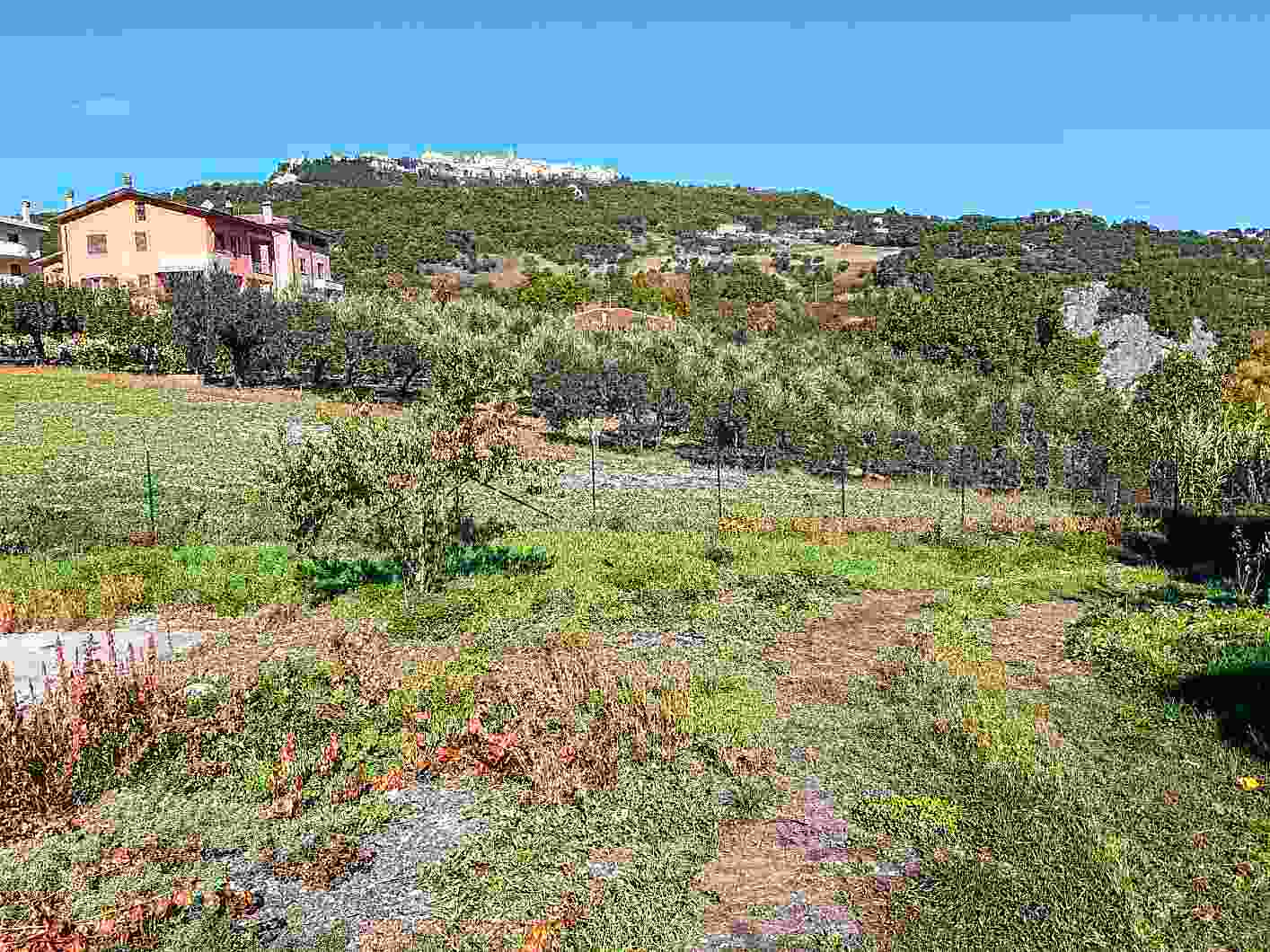 -n.6 Particelle di terreno di superficie totale è pari a 6.080 mq., Campo da tennis incompleto e non accatastato, di superficie 588 mq., costruito sulle particelle 395 e 598, con Licenza Edilizia n.795/1995 del Comune di Mirabello Sannitico, privo di agibilità; n.5 Aree urbane di consistenza totale pari a 1.954 mq.