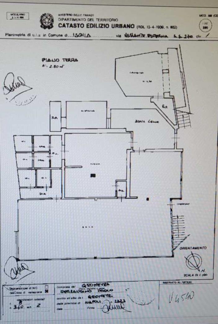 Piena proprietà immobile cat D/8 attualmente adibito a ristorante. Si sviluppa su un terrazzamento ad alcuni metri di altezza dal livello stradale raggiungibile dalla S.P. da un’area di parcheggio privata ed una scalinata su cui non risulta costituita una servitù di passaggio. Il locale è costituito da più strutture edilizie: nella zona centrale ci sono i servizi igienici e la cucina, l’ambiente più avanzato è destinato ad accogliere i clienti e la struttura retrostante è destinata a cambusa e deposito.