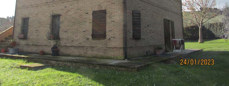 Diritti di piena proprietà su casa indipendente con corte, accessorio, piccolo appezzamento di terreno in Sant’Elpidio a Mare, Strada Monte Travaglioso n° 243. L' abitazione si sviluppa su: PIANO TERRA con ingresso, soggiorno, cucina, tinello, bagno e sottoscalaPIANO PRIMO con due camere matrimoniali, cameretta, doppi servizi, disimpegnoPIANO INTERRATO cantina con due vani comunicantiPIANO SECONDO sottotetto ampio spazio irregolare.I piani sono collegati da scale interne