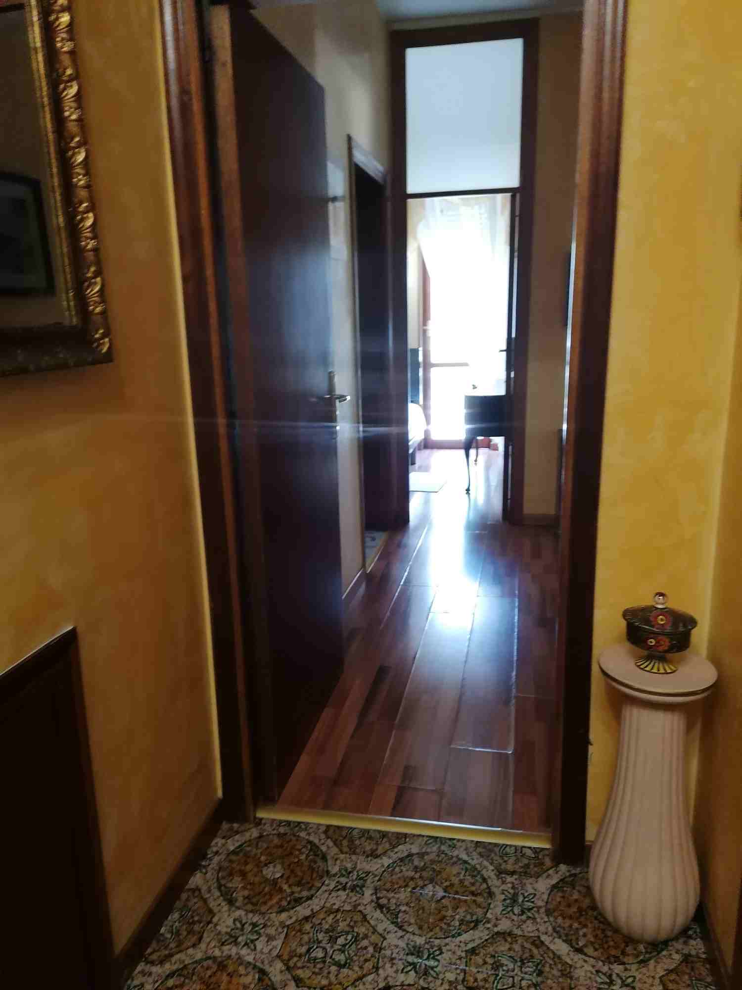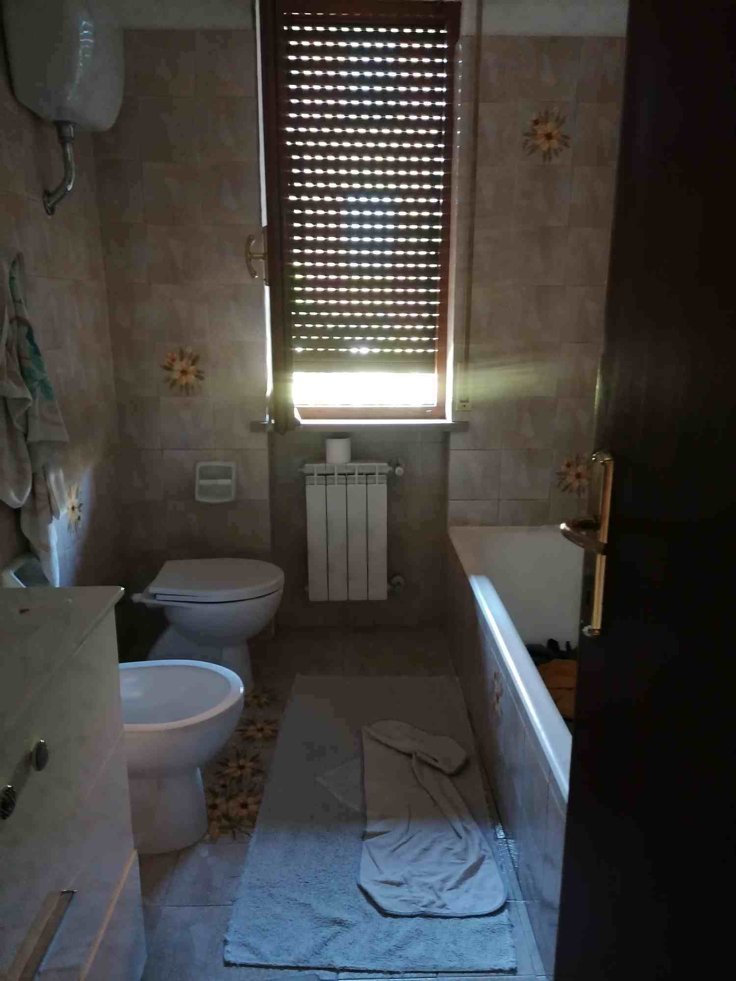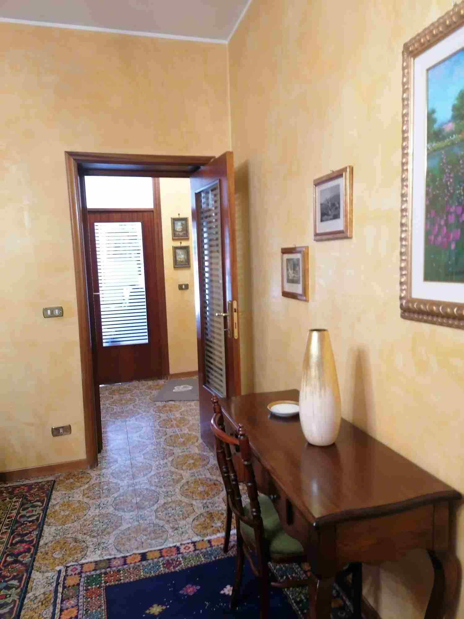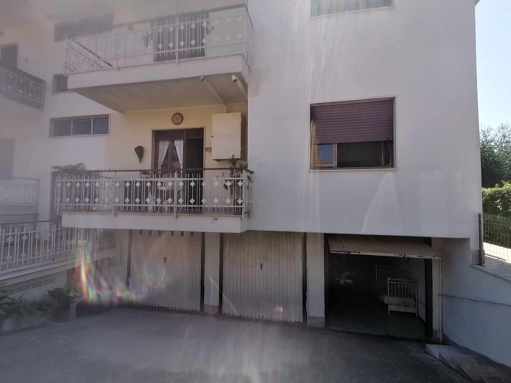Appartamento di civile abitazione, posto al piano terra, della superficie di Mq. 109,00 circa, costituito da ingresso, soggiorno, cucina, due camere da letto, due bagni (di cui uno senza finestra), ripostiglio, disimpegno e tre balconi della superficie di Mq. 19,00 circa;Garage (Mq. 19,30 circa) e locale di sgombero (Mq. 19,19 circa) posti al piano seminterrato.