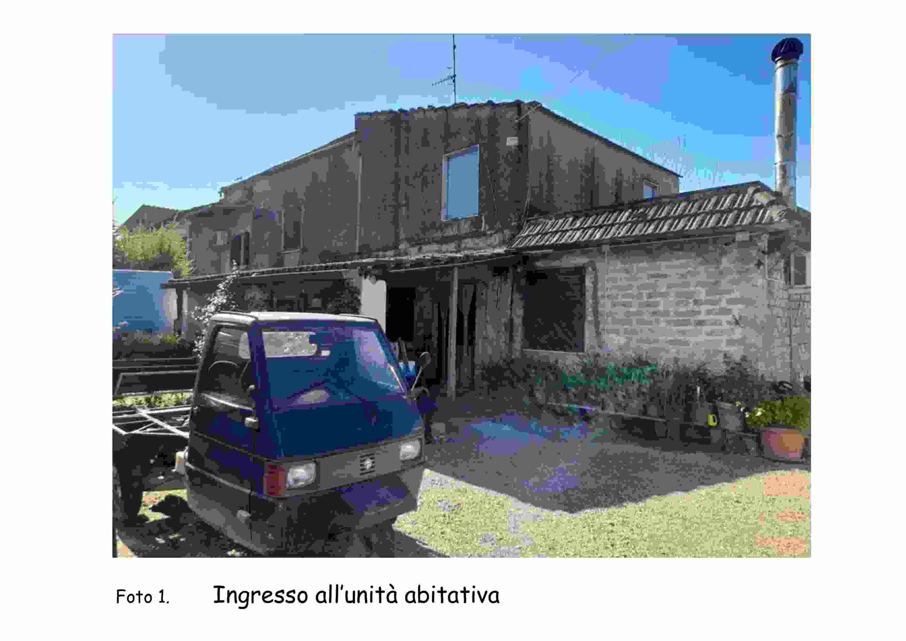 Quota 1/1 di fabbricato in Minturno a cui si accede da via Appia 888. Si sviluppa su due livelli. P-T cucina, soggiorno, bagno. P-1 camera da letto, bagno, ripostiglio, 2 vani e cantina e stalla. Quota 1/1 di terreno seminativo arborato adiacente. Quota 1/6 strada di accesso