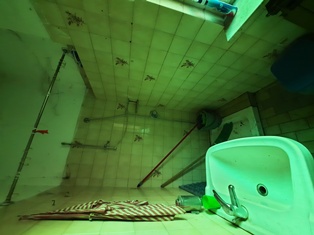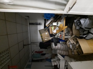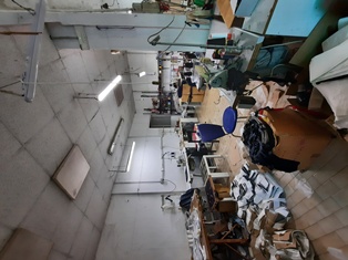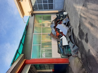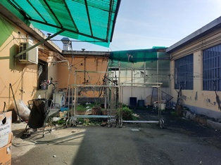 A) Basso fabbricato ad uso laboratorio utilizzato come sartoria al piano terra (1° f.t.) composto da laboratorio, magazzino, cucina, disimpegno e servizi, b) locale costruito abusivamente, collegato fisicamente all'immobile sopra descritto sub a) chiuso sugli altri due lati da una struttura in metallo e vetro, costruito al posto di un box auto ora demolito che si trovava nell'area cortile comune