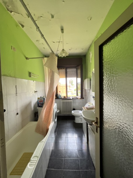 L’abitazione è posta al secondo piano ed è costituita da ingresso, da un ampio soggiorno e cucina, disimpegno notte, bagno, camera, camera con balcone e sottotetto al piano terzo.Il box, posto nel fabbricato accessorio realizzato in aderenza al fabbricato principale in lato nord, DOVRA’ ESSERE DEMOLITO in quanto non sanabile perché realizzato senza autorizzazione edilizia e senza il rispetto della distanza da confine in lato ovest, (vedasi perizia paragrafo difformità edilizie).