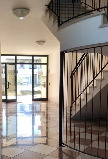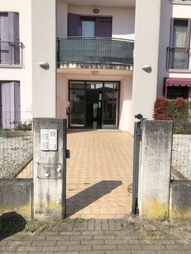 Appartamento al primo piano di un edificio plurifamiliare con pertinenziale locale a uso garage al piano interrato inserito nel fabbricato “A” all'interno della Lottizzazione residenziale "Progetto Norma nr. 17", costituito da vano di ingresso di disimpegno, ampio soggiorno, zona notte con disimpegno, camera matrimoniale, bagno e camera singola. Abitazione sup.lorda 71,13 mq circa. Garage sup.lorda 16,56 mq. Discrete condizioni. L’alloggio è locato a terzi con contratto opponibile e scadenza il 31.7.2027.