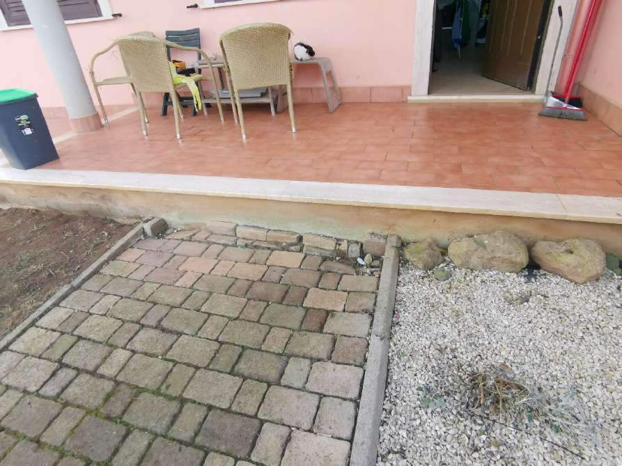 Appartamento interno 3 posto al piano rialzato composto da soggiorno con angolo cottura, camera, bagno, con annessa corte pertinenziale esterna, - posto auto scoperto n.2 al piano terra, all'interno del piazzale condominiale, - posto auto scoperto n.5, all'interno del piazzale condominiale, attualmente non utilizzabile.
