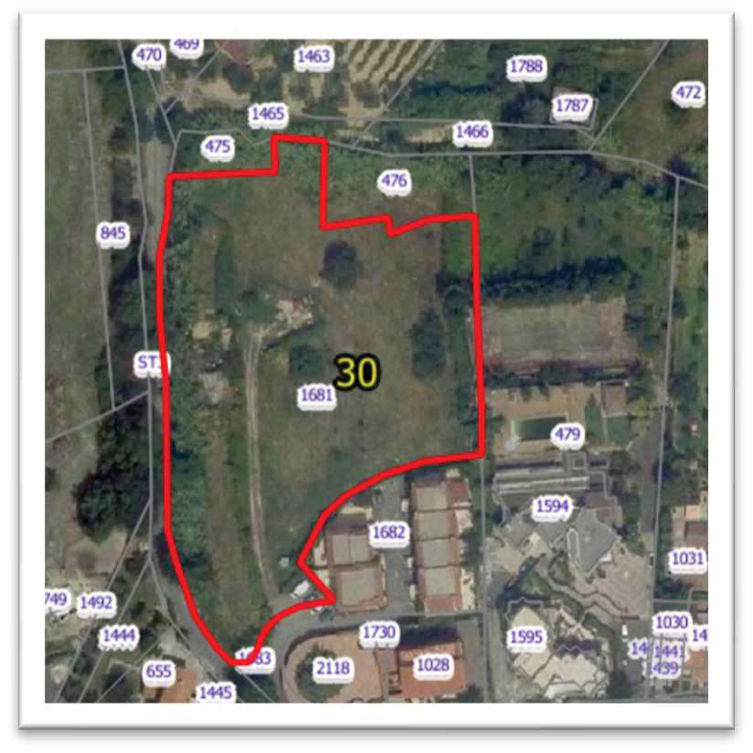 Piena proprietà dei terreni siti in Monterotondo Via di Palagi, censiti al fg. 30, p.lle 1656 – 1683 - 1681 – 475 – 476, ricadenti in Parte zona "C" di Nuova Espansione - Sottozona Ambiti e Comparti "A1", in Parte zona "C" di Nuova Espansione - Sottozona Ambiti e Comparti CPR"I", in Parte zona "F" Servizi di Interesse Privato - Sottozona "F10" Verde Privato e Parte Viabilità.
