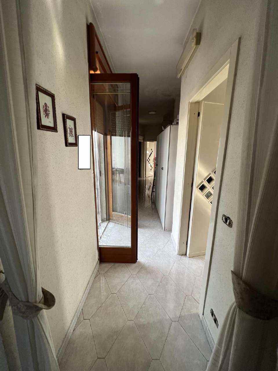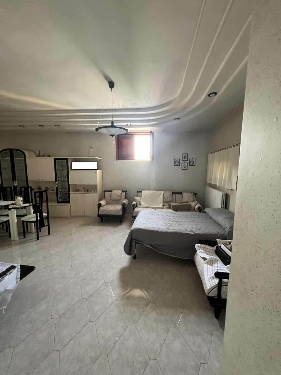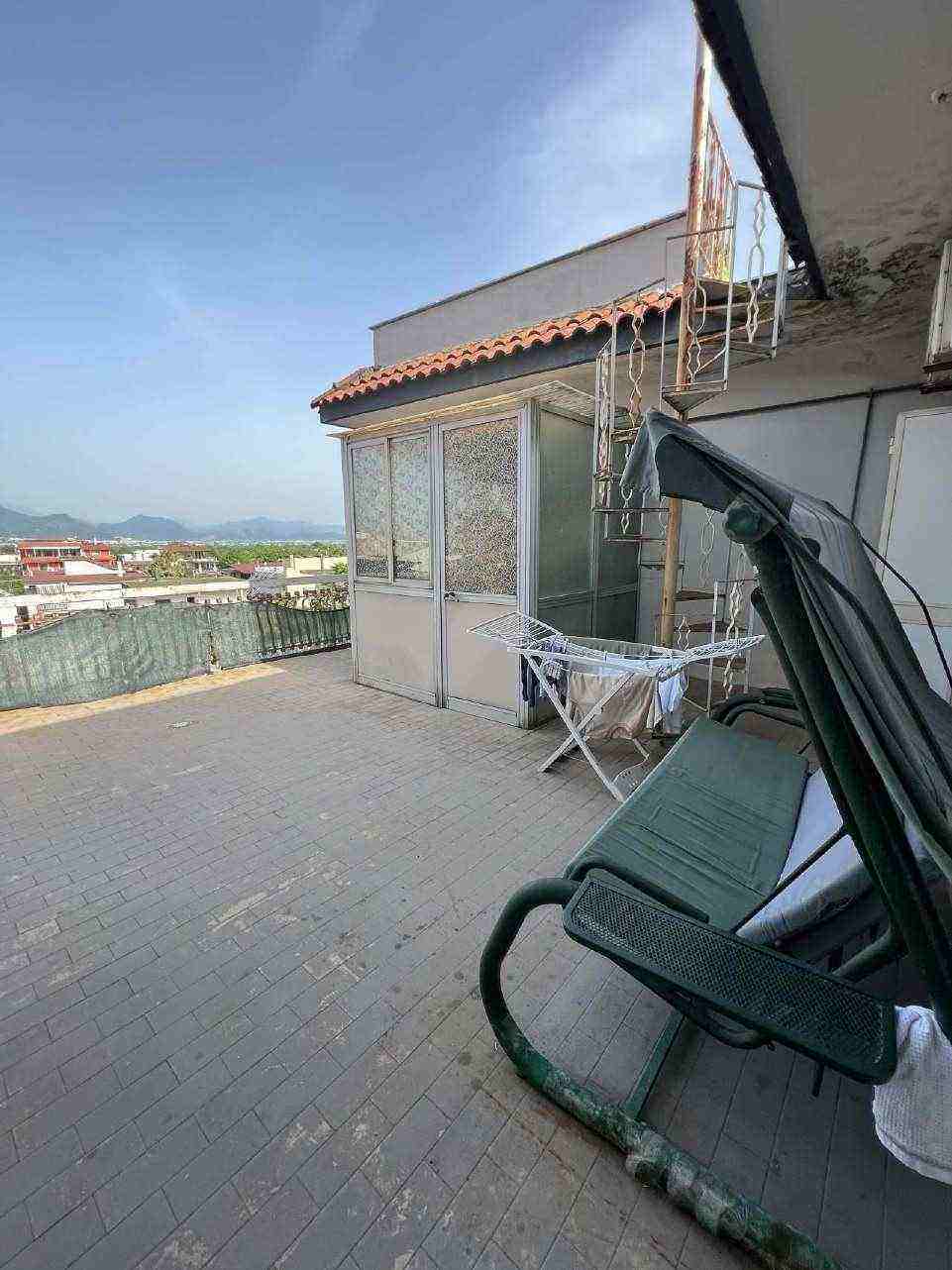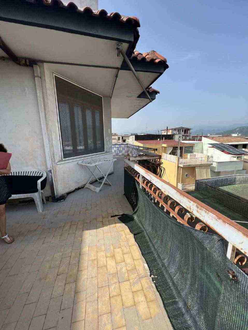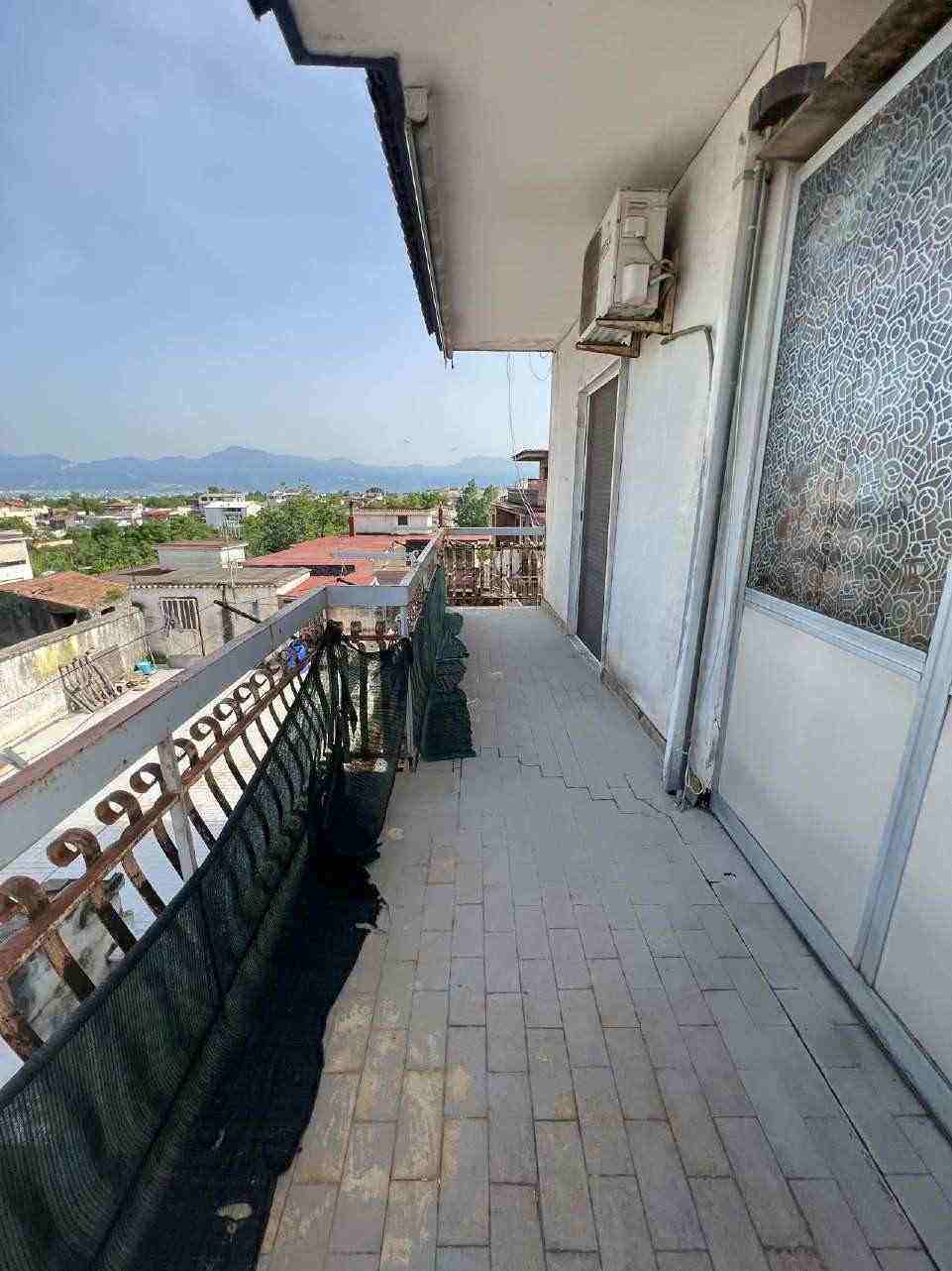 San Giuseppe Vesuviano, via Lucarelli n. 55/14, piano 3, proprietà appartamento, composto da ingresso, 4 ambienti, cucina, corridoio, 2 w.c. e terrazzo con ripostiglio in alluminio. Sup. netta abitazione 140 mq, terrazza 63. Occupato dal debitore esecutato. Realizzato senza titolo edilizio e istanza di condono incompleta e priva di grafici, ma ancora in corso di definizione. Difformità non sanabili rispetto a planimetria catastale: realizzazione scala di accesso al lastrico solare.