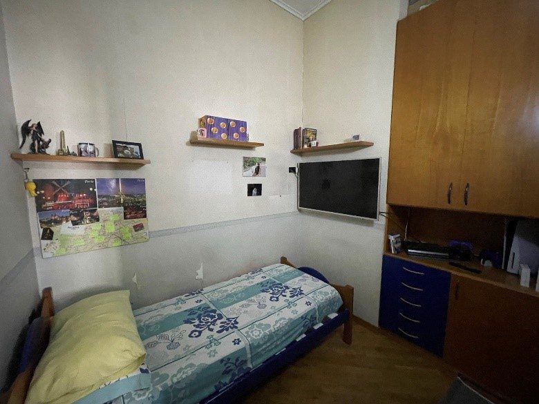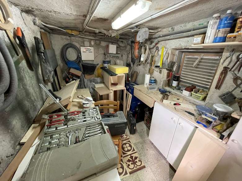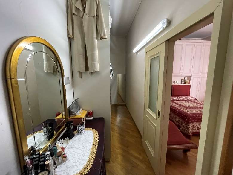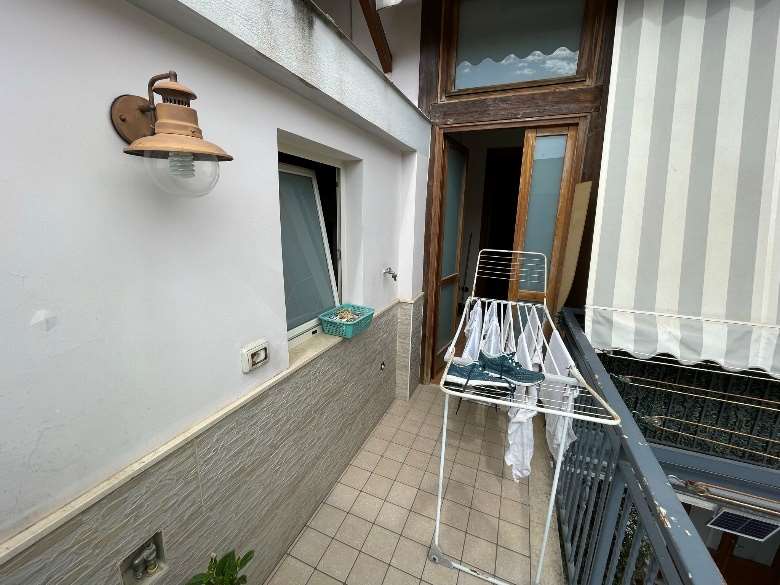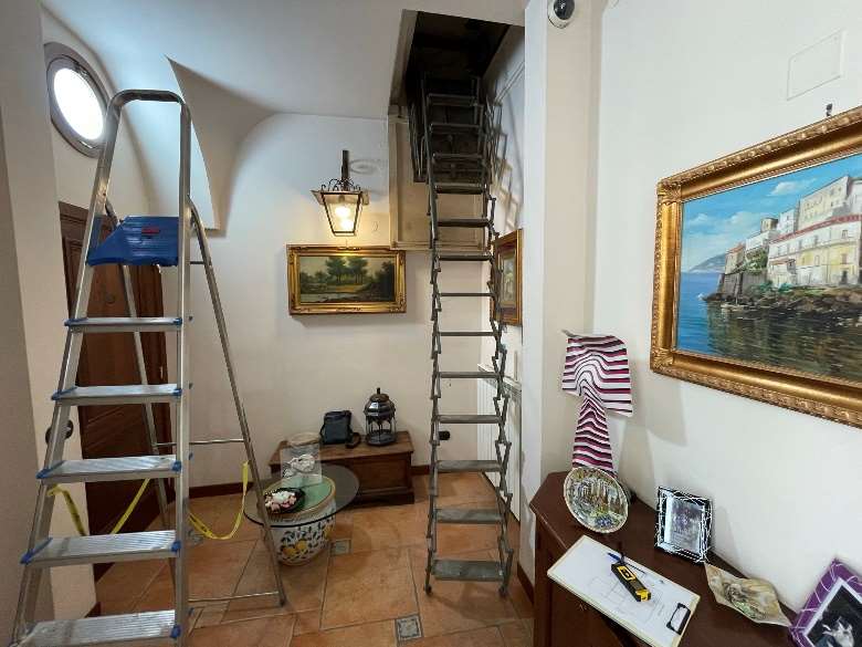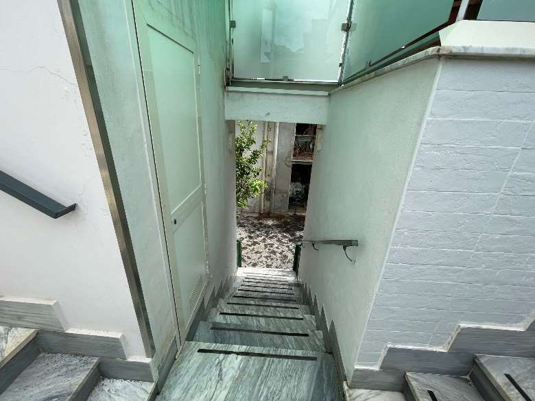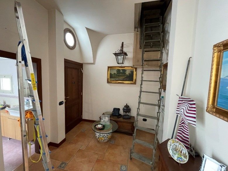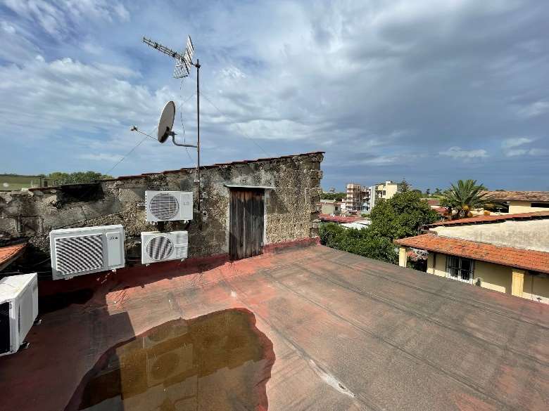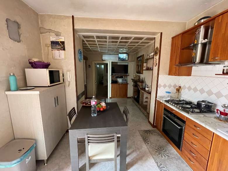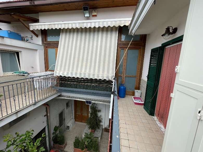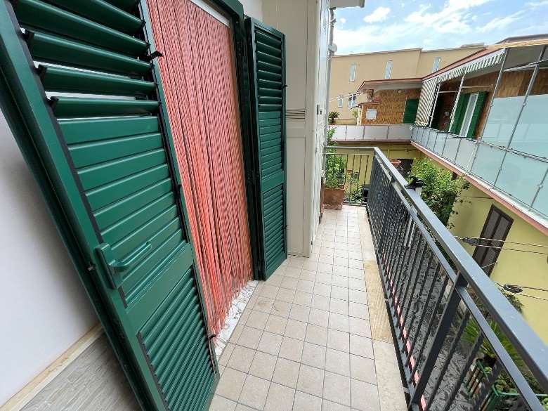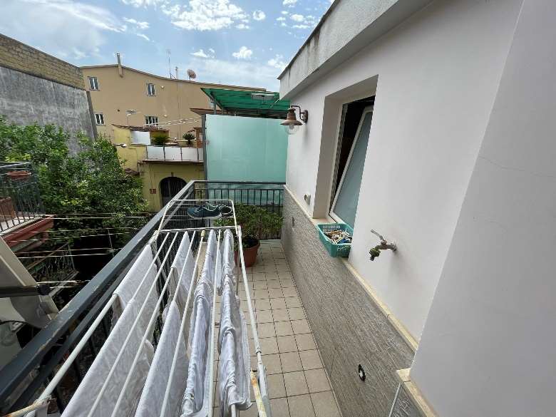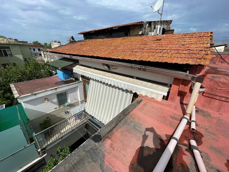 Appartamento al piano primo costituito da 6 ambienti 2 bagni e cucina in sufficienti condizioni di manutenzione.Superficie commerciale mq122,55 superficie interna netta mq 97,60 oltre balconi. Il locale deposito il cui accesso avviene da una botola presente nell’appartamento è costituito da sottotetto al piano secondo, allo stato grezzo privo di rifiniture. Superficie commerciale mq.11,40 calcolo effettuato considerando l’immobile come lastrico solare giacché la volumetria è risultata abusiva,non sanabile