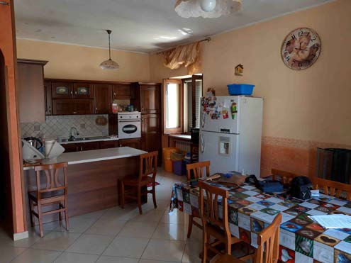 Piena e intera proprietà di casa unifamiliare articolata su tre livelli. Il piano terra è composto da ingresso-soggiorno, cucina–pranzo, camera e bagno. Il primo piano è composto da soggiorno-cucina–pranzo, tre camere, disimpegno e Bagno. Il piano seminterrato è composto da locale cantina.