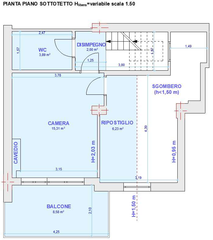 Abitazione di tipo economico (piano 2-3) ubicato all’interno di un edificio di 3 piani fuori terra, un piano sottotetto e un piano seminterrato. Superficie catastale totale: 100 mq, superficie catastale totale escluse aree scoperte: 95 mq; consistenza 4,5 vani. L’unità immobiliare è un bene di proprietà di persone fisiche non detenute in regime di impresa, pertanto, il trasferimento della suddetta proprietà immobiliare è soggetto all’imposta proporzionale di registro ipotecale e catastale.