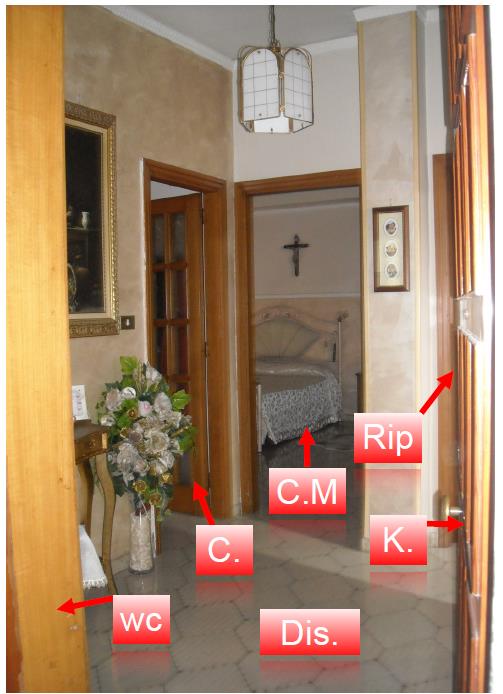 L'immobile è composto da ingresso-disimpegno, cucina, soggiorno, ripostiglio, camera matrimoniale, cameretta, bagno e due balconi, uno sul lato sud-est l’altro sul lato nord-ovest.