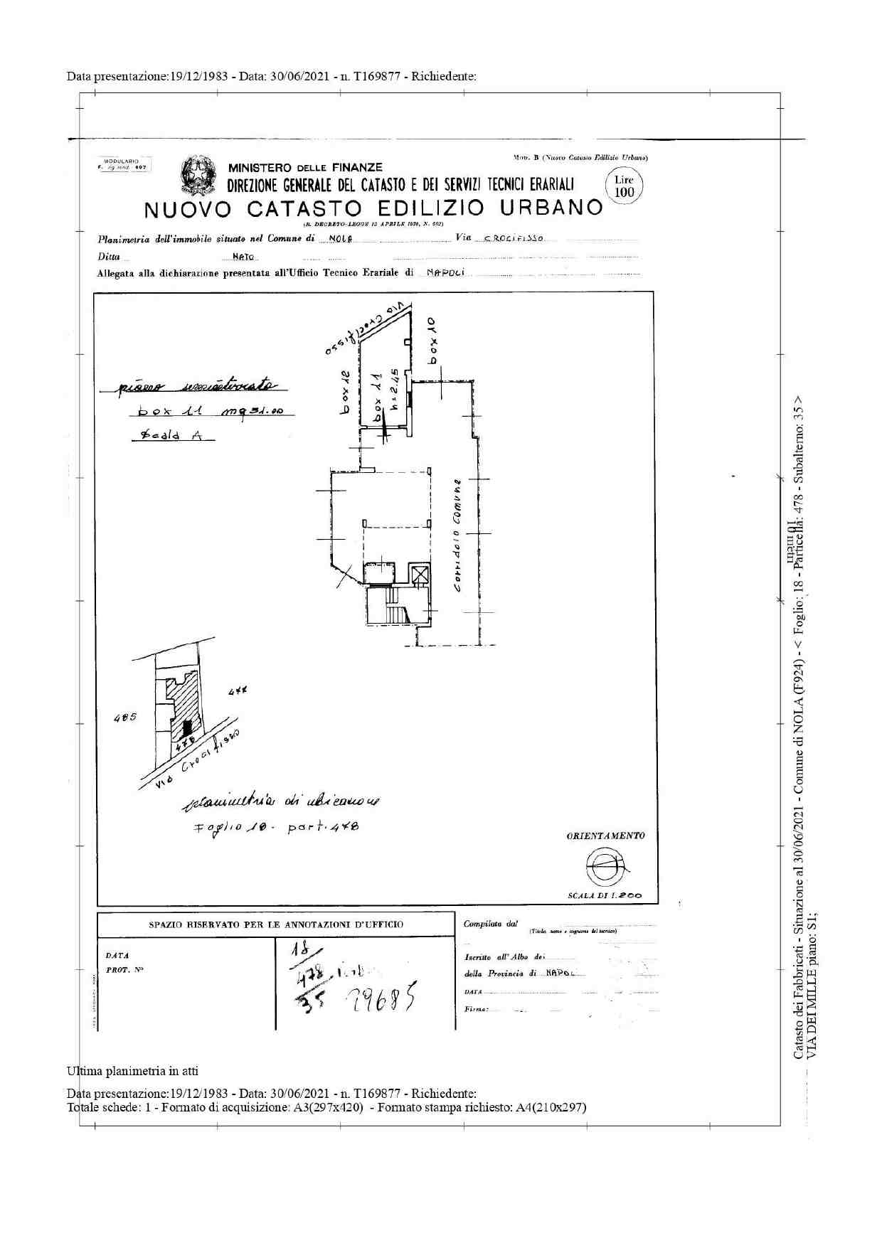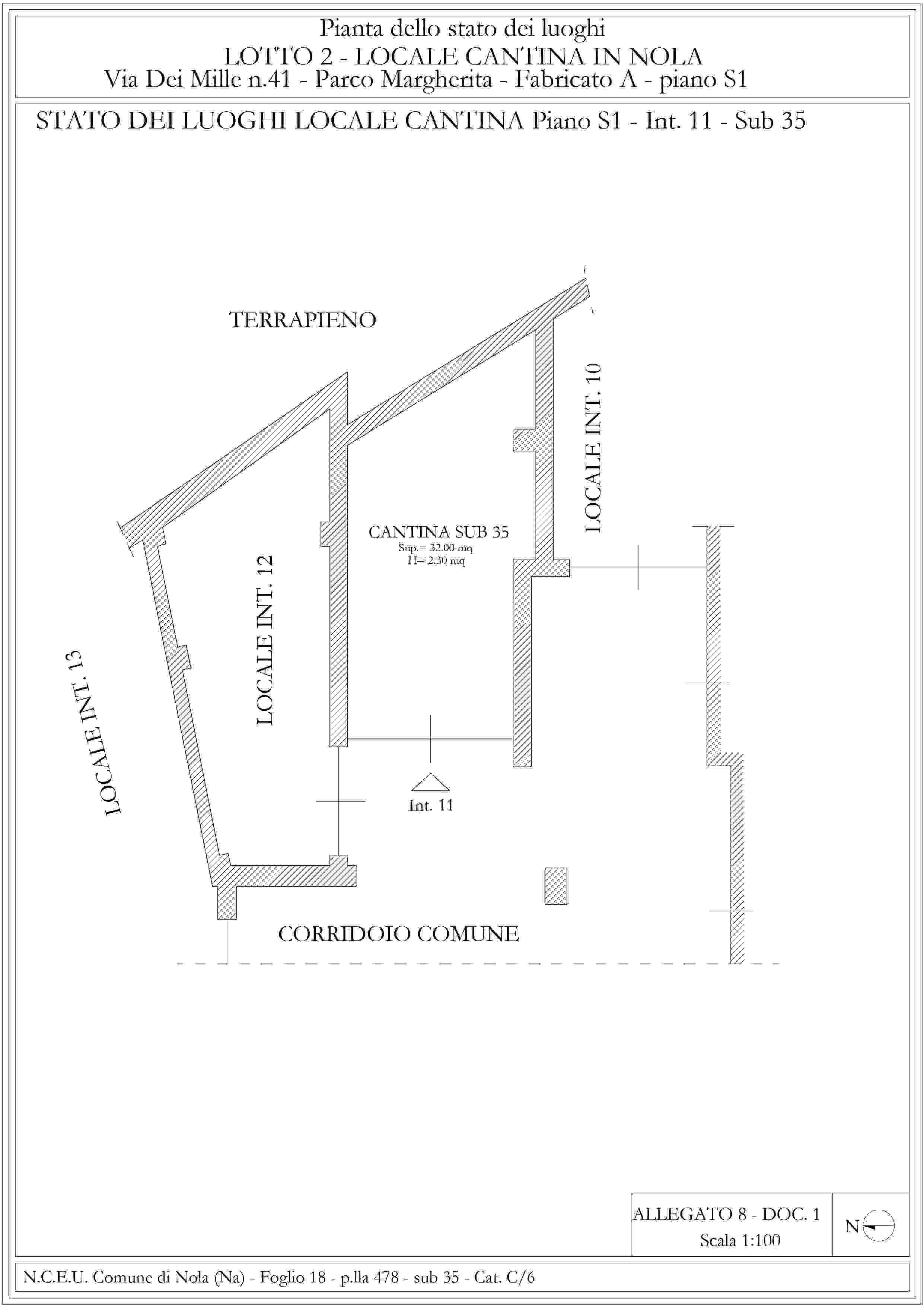 Locale cantina, parco Margherita fabbricato A via dei Mille n. 41, piano seminterrato cons. 32 mq.