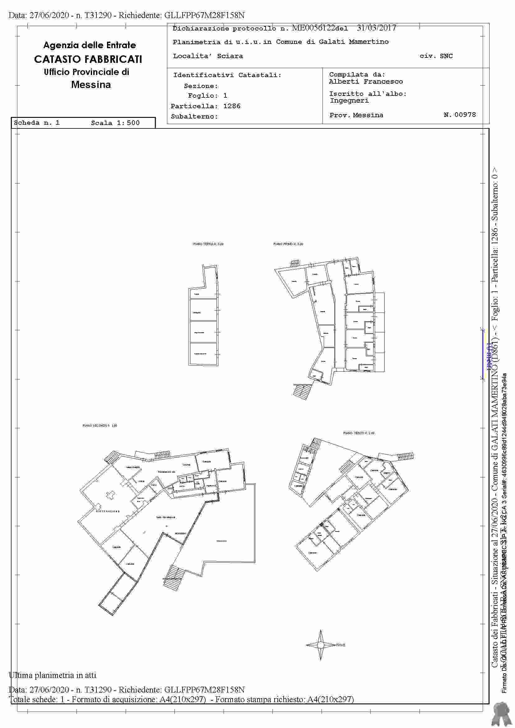 Albergo a Galati Mamertino Contrada Sciara snc, della superficie commerciale di 1.175,70 mq per la quota di 1000/1000 di piena proprietÃ