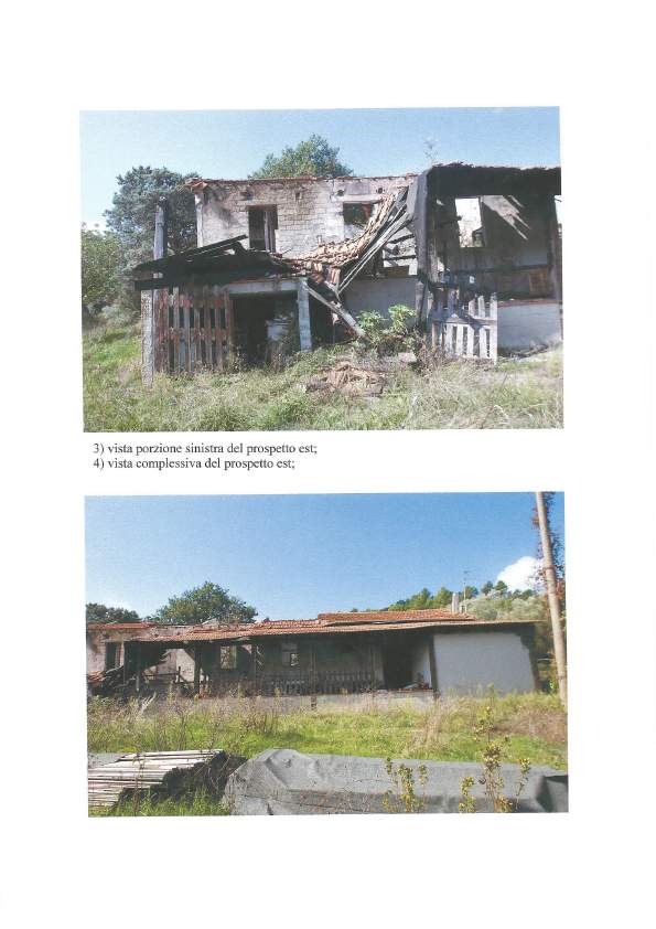 CORPO A - abitazione monofamiliare realizzata negli anni 90, in rovina e inagibile a seguito di incendio; originariamente composto da due vani adibiti a cucina, due vani adibiti a camere, vano adibito a salotto e vano adibito a salone rustico. Il fabbricato era corredato di ampio patio coperto e di cantina e legnaia seminterrati. Sup. lorda ragguagliata ca. mq 184. La corte del fabbricato ammonta a circa mq 2.390. Si segnalano irregolarità catastali ed edilizie.