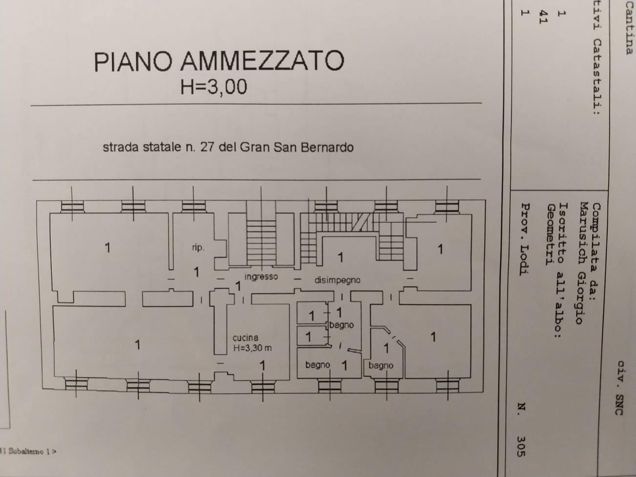 Unità immobiliari (sub. 1 e 2) in un fabbricato di 4 piani (due fuori terra lato strada statale, tre fuori terra lato opposto) a pianta rettangolare di superficie 183 mq ogni piano in fregio alla Strada Statale 27 del Gran San Bernardo (per la precisione al km. 30+500). Il fabbricato è particolarmente datato (si presume la costruzione risalente agli inizi del secolo scorso) ed in mediocri condizioni di manutenzione.