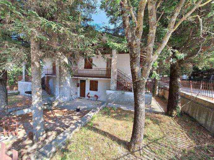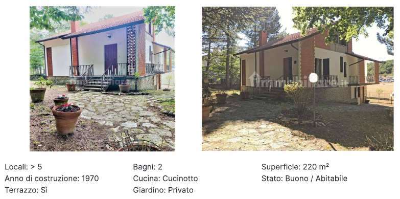 LOTTO UNICO: intera e piena proprietà di due abitazioni site nel comune di Apiro (MC), in località Pian dell’Elmo, via Faggeta n. 25-27 oltre alla quota di 1/2 della proprietà su garage comune avente, quest’ultimo, accesso indipendente dal fabbricato residenziale.