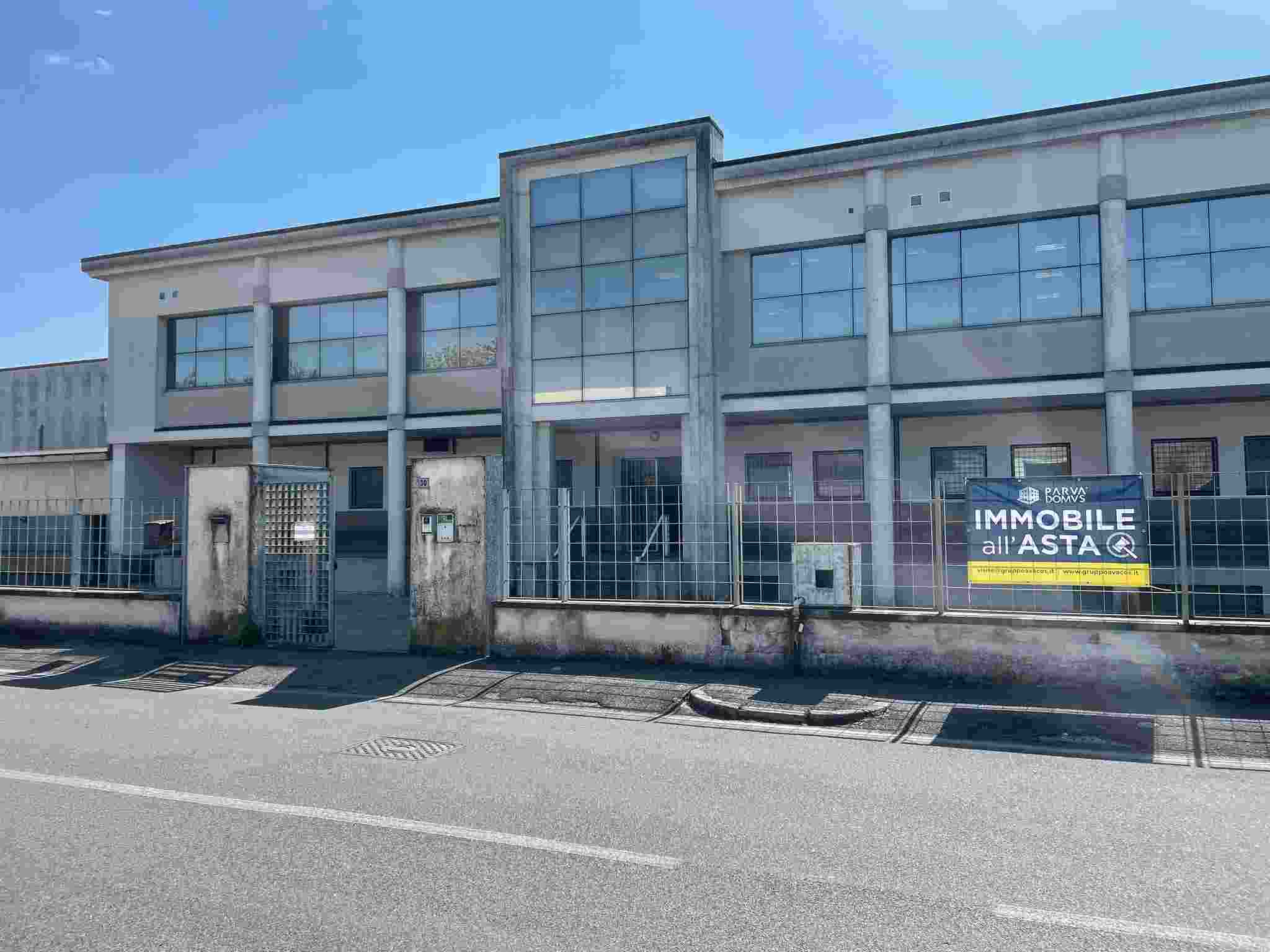 LOTTO UNICO: proprietà superficiaria di capannone con uffici e area scoperta. I beni in esame consistono in un complesso a destinazione produttiva, composto da capannoni e uffici, questi disposti su due livelli di piano, con area scoperta esclusiva di circa 330 mq. La superficie ragguagliata totale dell’intero compendio, incluse aree coperte e scoperte, risulta essere di circa 4.097 mq
