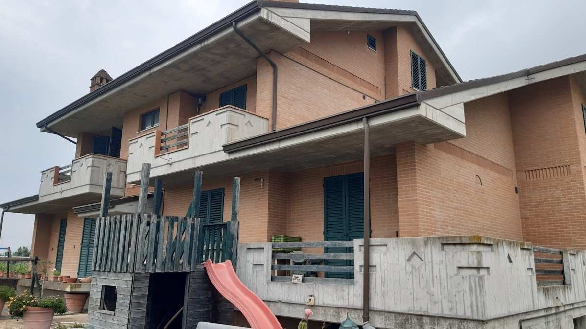 Diritti di piena proprietà pari ad 1/1 su Porzioni del fabbricato sito in Comune di Monterubbiano, località Rubbianello, via Raffaello Sanzio, 173/A. Il compendio immobiliare si compone di un’unità abitativa con annessa soffitta e due locali garage. Distinti al NCEU al foglio 31, part. 525, sub. 5 -7-8.