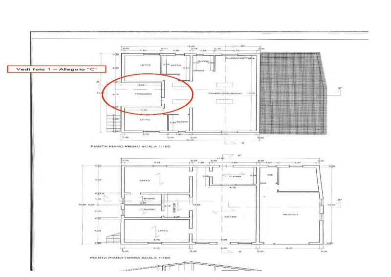 Appartamento posto al piano primo (sottotetto), raggiungibile tramite scala esterna, composto da disimpegno, ampio soggiorno, camera da letto, cucina e bagno.