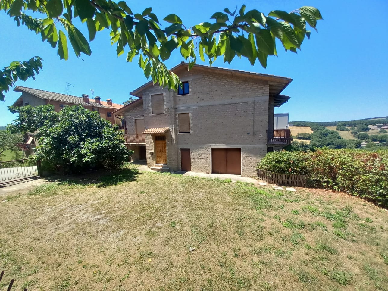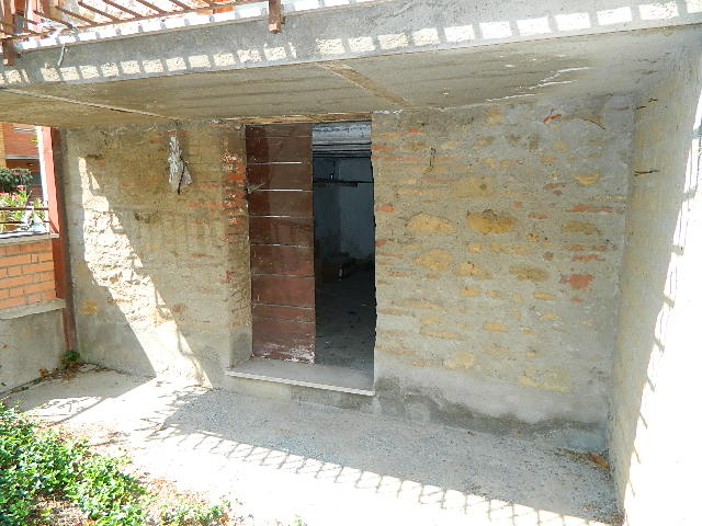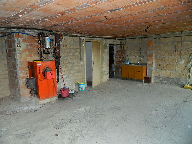 Primo piano, soffitta, con fondo e garage al piano sottostrada e piano terra, accesso alla corte esclusiva. Composto dadisimpegno, sala con balcone, cucina, altro disimpegno, bagno, due camere di cui una con balcone, ripostiglio, accesso al lastrico solare di circa 25mq. Scala interna per la soffitta formata da locale sottotetto al grezzo. Al piano sottostrada locale magazzino. Al piano terra scale scendono ai locali composti da corridoio, bagno, caldaia, fondino e vano garage con 2 porte metalliche.