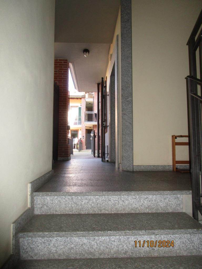 In Comune di MESERO, via Matelda n. 18 e precisamente:*piena proprietà di appartamento al piano terra, composto da soggiorno-letto, cucina, servizio, disimpegno, porticato, cortile e giardino con annessi cantina al piano interrato a posto auto scoperto al piano terra.