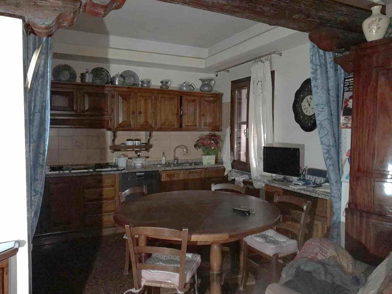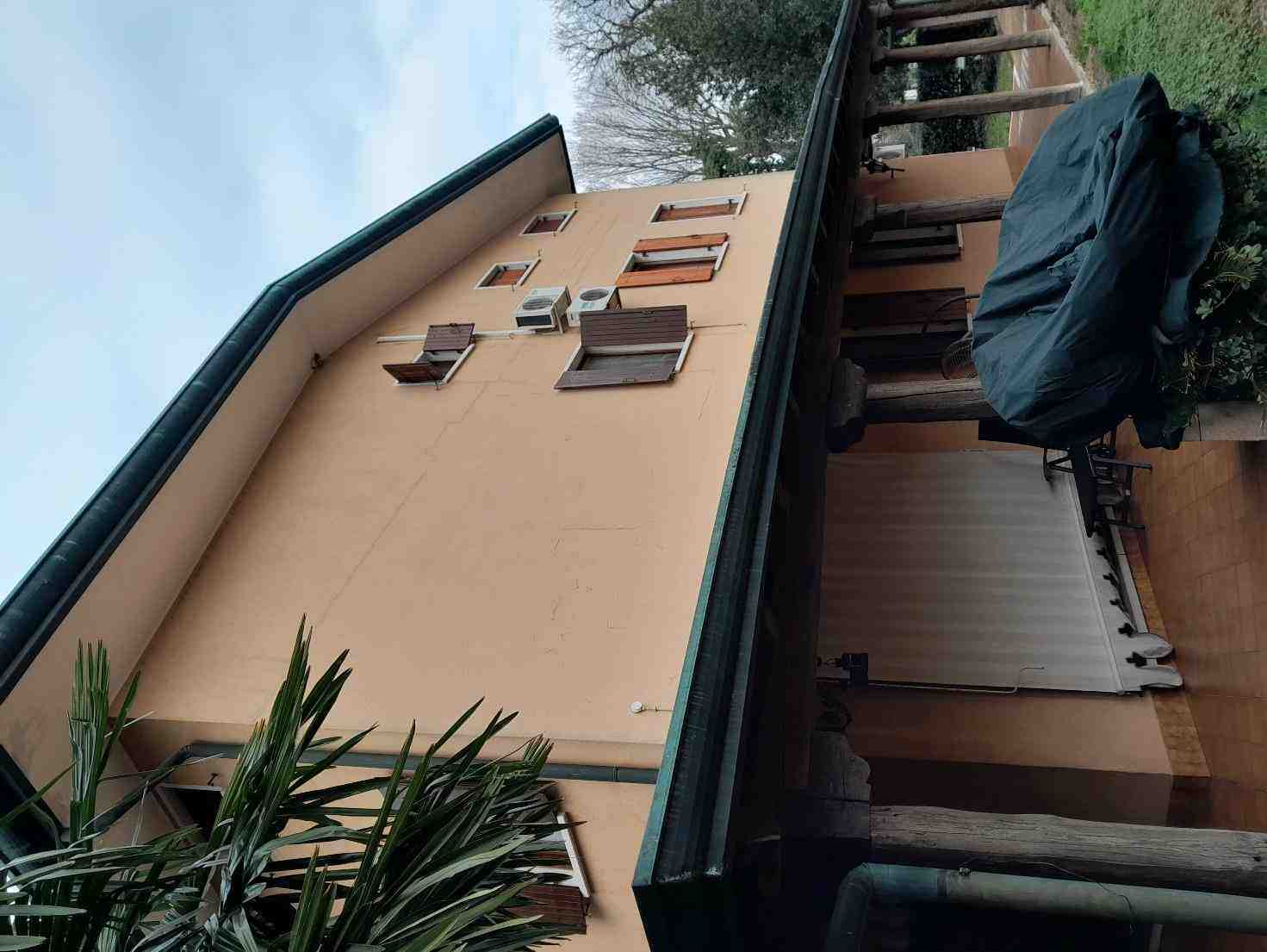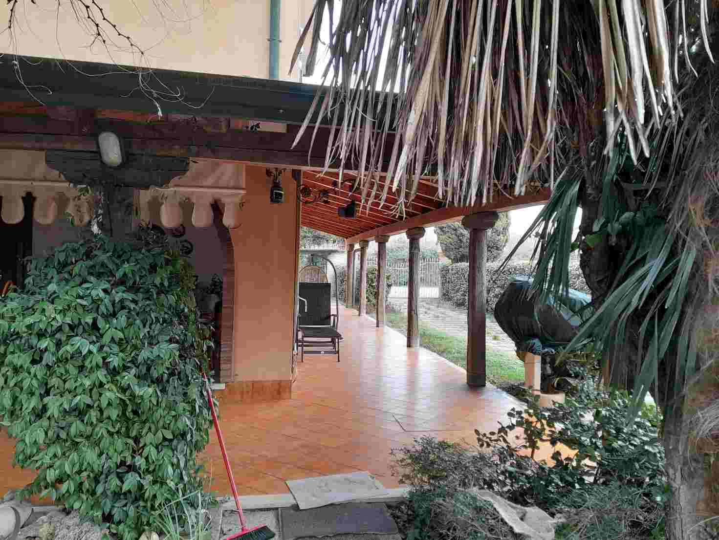 Abitazione in villino a schiera in zona agricola che si estende ai piani terreno, primo e secondo con portico ai lati est e sud e accesso indipendente. Piano terra: soggiorno, cucina, taverna con caminetto e zona pranzo, servizi; primo piano: disimpegno, camere e servizi; secondo piano disimpegno, camere e servizi. Lo stato di manutenzione generale dell’immobile è buono. Occupato dai debitori.