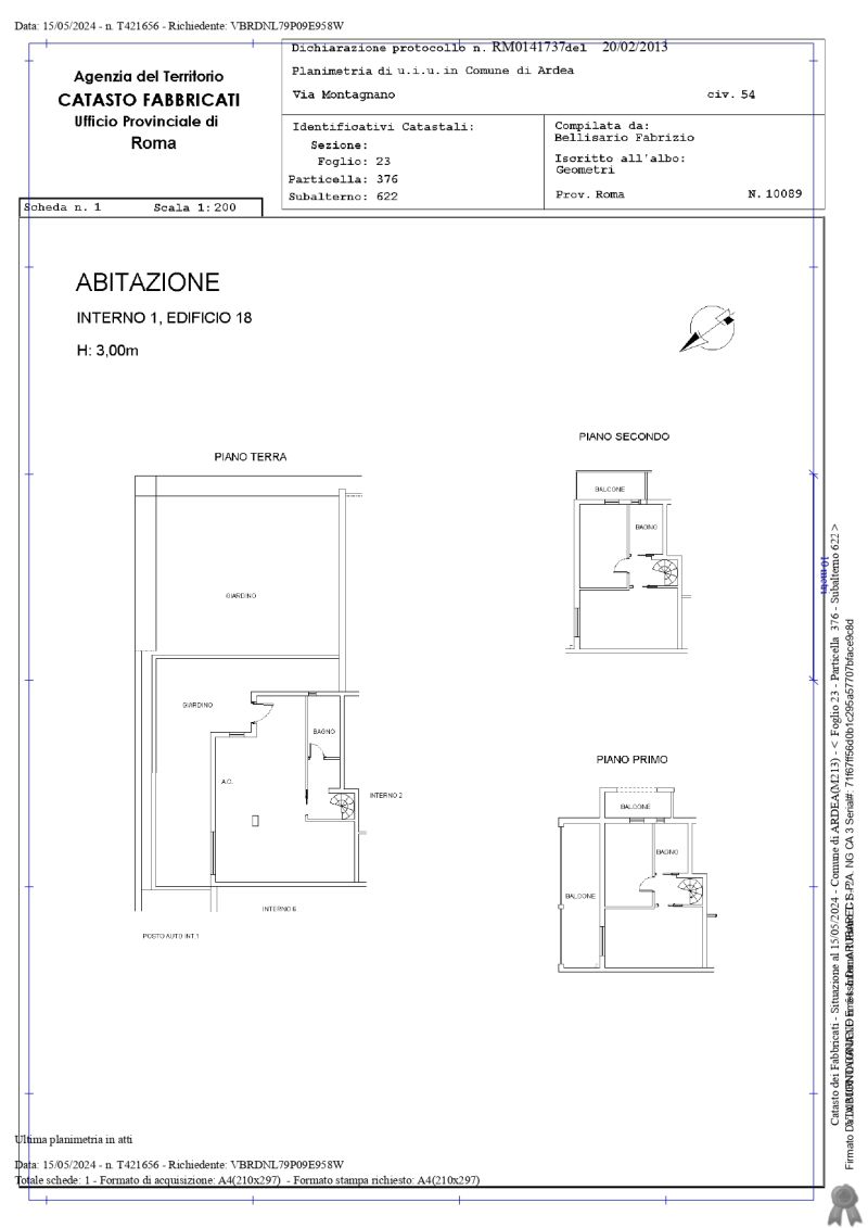 Appartamento facente parte di un fabbricato plurifamiliare di maggior consistenza, dispostosu piano terra, primo e secondo ed individuato con l’interno 1, con annessa corte esclusiva eposto auto.