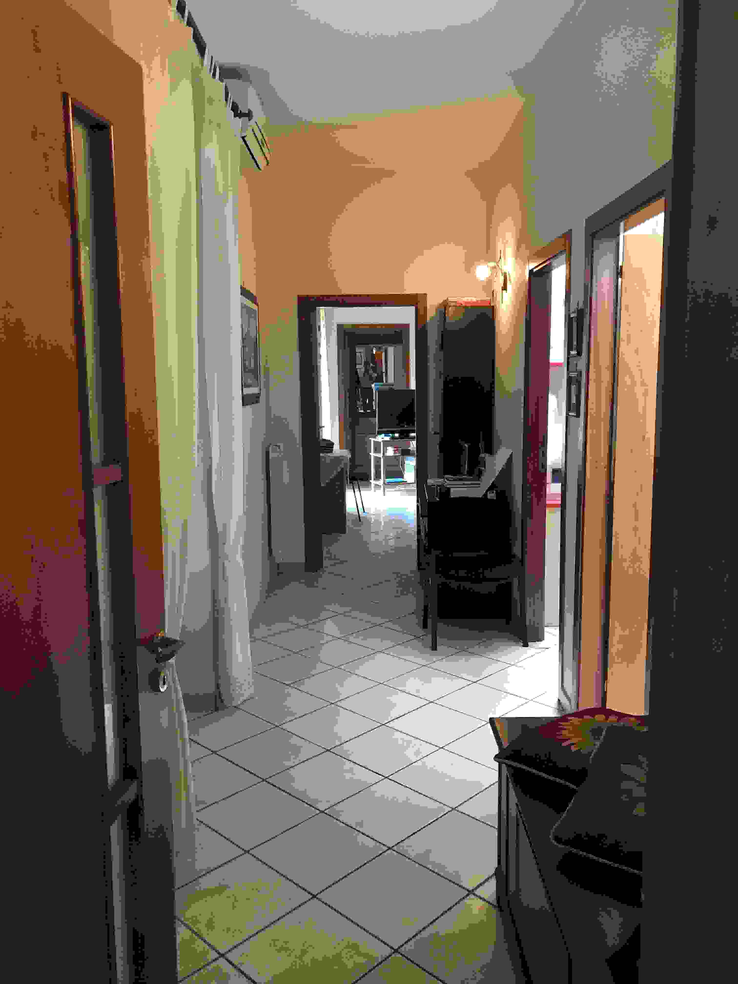Quota 1/2 in piena proprietà dell’appartamento ubicato in Teverola (CE) alla via Toti, 5. Composto da 6,5 vani catastali e quota di ½ del piccolo locale deposito (già divisa di fatto dalle proprietà aliene) sito a destra del cortile.L’ultima autorizzazione amministrativa dell’appartamento è il P.d.C. n. 113/06 cui lo stato dei luoghi non è conforme in ordine a lievi difformità facilmente sanabili.