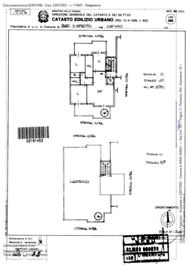 Piena proprietà per la quota di 1/1 dell’unità immobiliare facente parte del “fabbricato D” di complesso residenziale accessibile attraverso un cancello carrabile e un cancello pedonale direttamente dalla Strada Catino, sita al quarto piano della scala D, interno otto, composto da due vani, soggiorno-pranzo, disimpegno, cucina, due bagni, ripostiglio e due balconi, uno lato sud e uno lato nord.