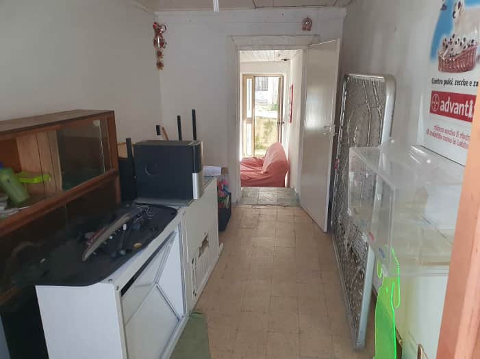 Piena proprietà su locale commerciale adibito a bar-pizzeria, al piano terra e seminterrato del maggior fabbricato. Il compendio è suddiviso in due zone: una zona bar/gelateria, con due servizi igienici, separati dall’ambiente principale da un disimpegno; un ripostiglio ed un laboratorio; una zona adibita a pizzeria, due servizi igienici ed una cucina con disimpegno, dalla quale si accede ad un balcone e al cortile posteriore. Al piano seminterrato, un magazzino accessibile dal cortile posteriore.
