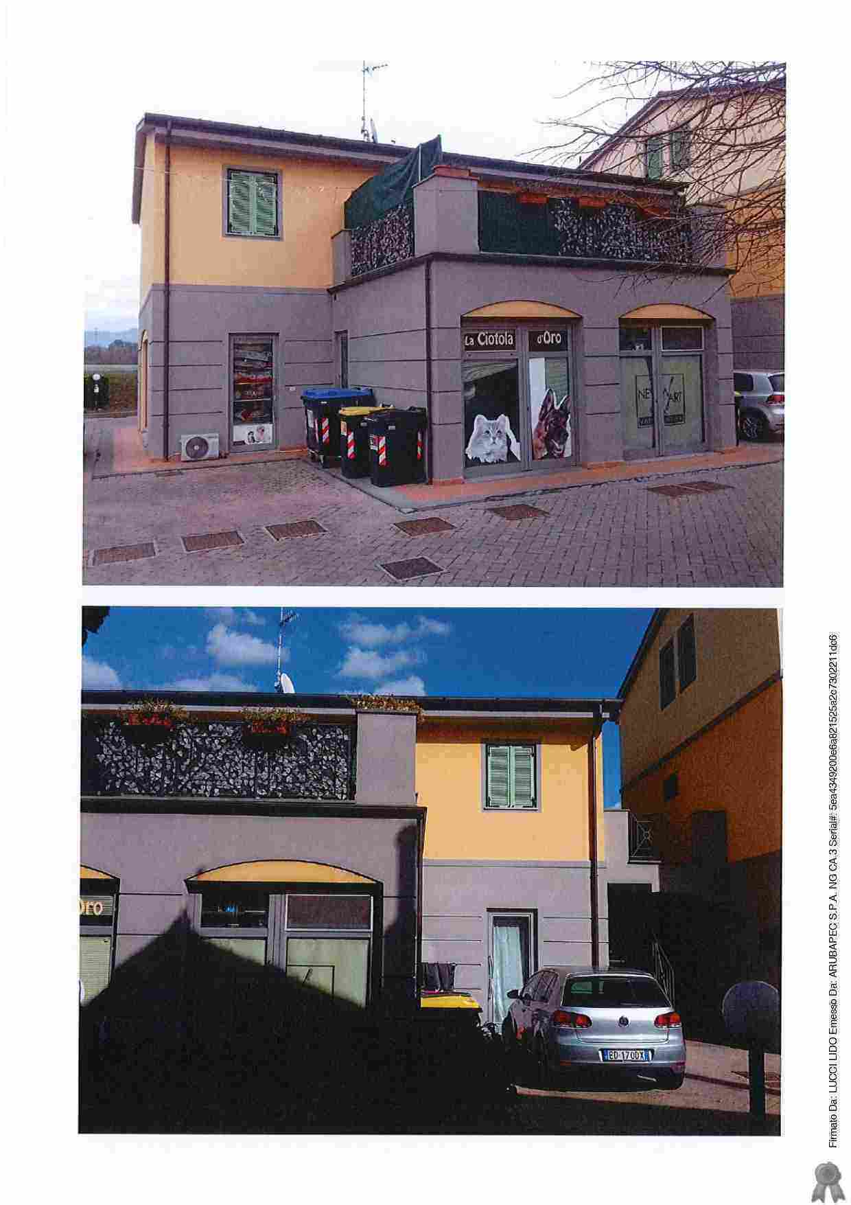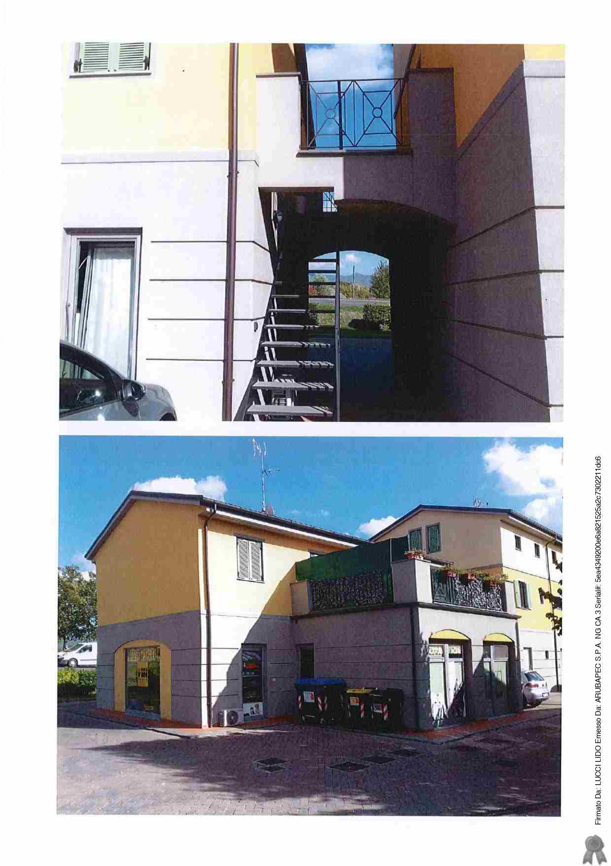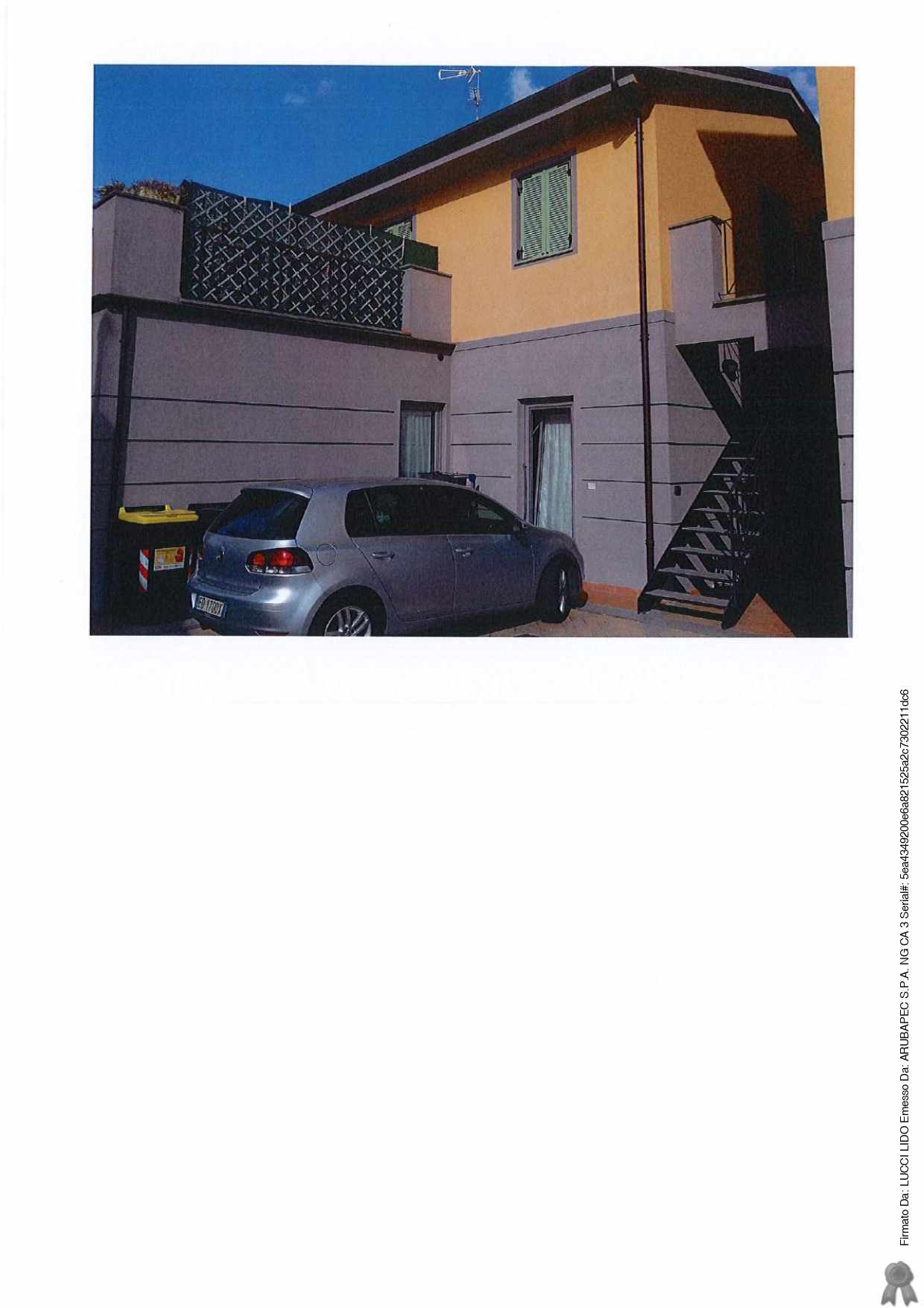 Piena proprietà di porzione immobiliare ad uso di civile abitazione al piano primo di un edificio di più ampia consistenza, accessibile mediante scala condominiale esterna, composto da soggiorno con angolo cottura, bagno, camera, disimpegno e balcone, corredata da due distinti posti auto scoperti, nonché comproprietà per la quota di 2/12 di varie utilità comuni come esattamente descritto in elaborato peritale ed avviso di vendita.