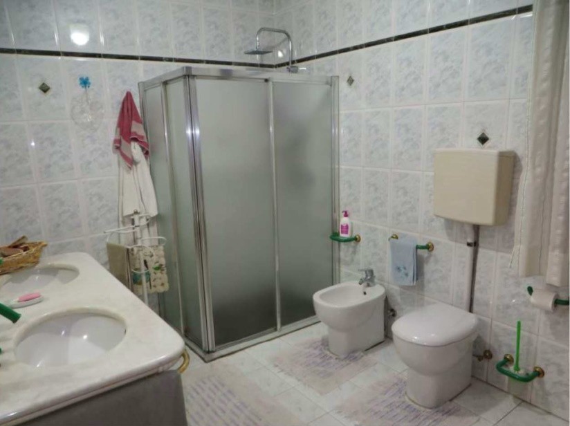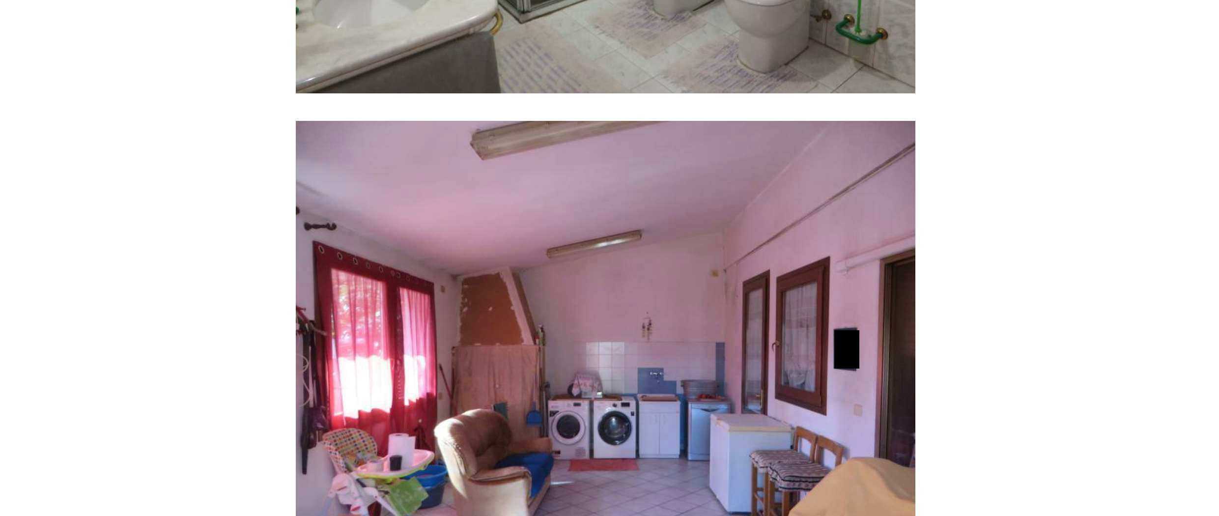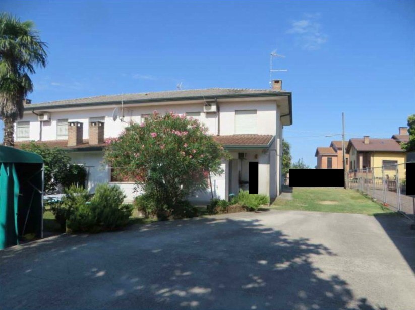 1/2 piena proprietà e 1/2 nuda proprietà di abitazione su due livelli (pino T-1, sup. catastale totale 183 mq, totale escluse aree scoperte 182 mq), due garage e corte comune. Identificazione catastale come da Avviso. Occupato dall'esecutata. Non si dichiara né la conformità catastale né la conformità edilizia ed urbanistica; Vincoli ed oneri, il tutto come da perizia a cui si rimanda per ogni specifica
