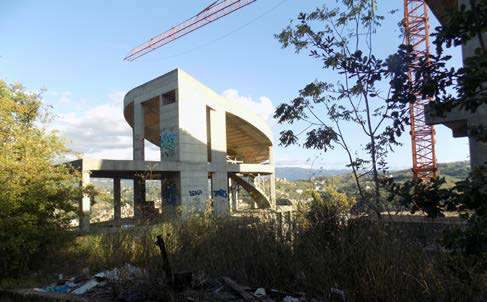 Fabbricati non attualmente censiti in catasto, mentre l’area sulla quale insistono della superficie catastale complessiva di mq 2.207,00, è definita da 4 p.lle al N.C.T. del Comune di Cosenza, loc. Muoio. I due fabbricati (tipologia di ville unifamiliari) si sviluppano su 3 livelli oltre sottotetto, allo stato realizzati per la sola parte strutturale, con telai a travi e pilastri in c.a., solai latero-cementizi e solette di copertura. Piena proprietà al 100%; libero ed in corso di costruzione.
