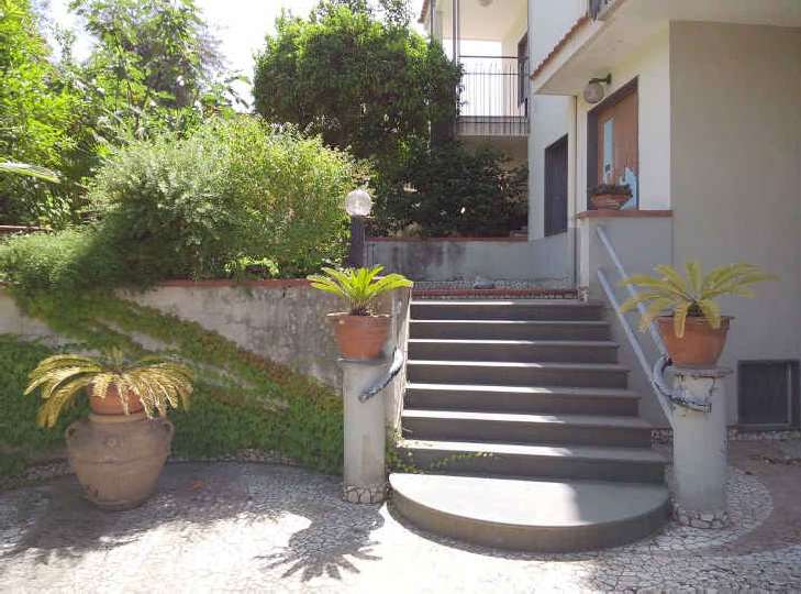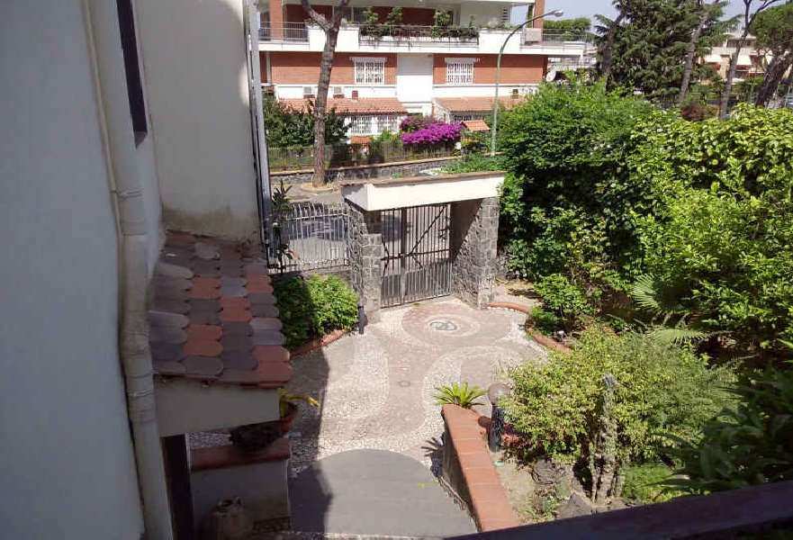 S. Sebastiano al Vesuvio via A. Volta 25 villa composta da piani cantinato, SMT, T, rialzato, 1°, 2°. Sup utile vani princ. e acc. mq 333,02. Occupato da debitore. Presentata istanza condono. Abusi: volume sollevato; aggiunta 2°porzione a livello interrato e ampliamento da lato autorimessa; variazioni sagoma e prospettiche. In perizia computati mc di eccedenza e prospettato ripristino locale caldaia, con computo in stima di costi e di alea di esito pratica e di esito parere Sovrintendenza e Ente Parco