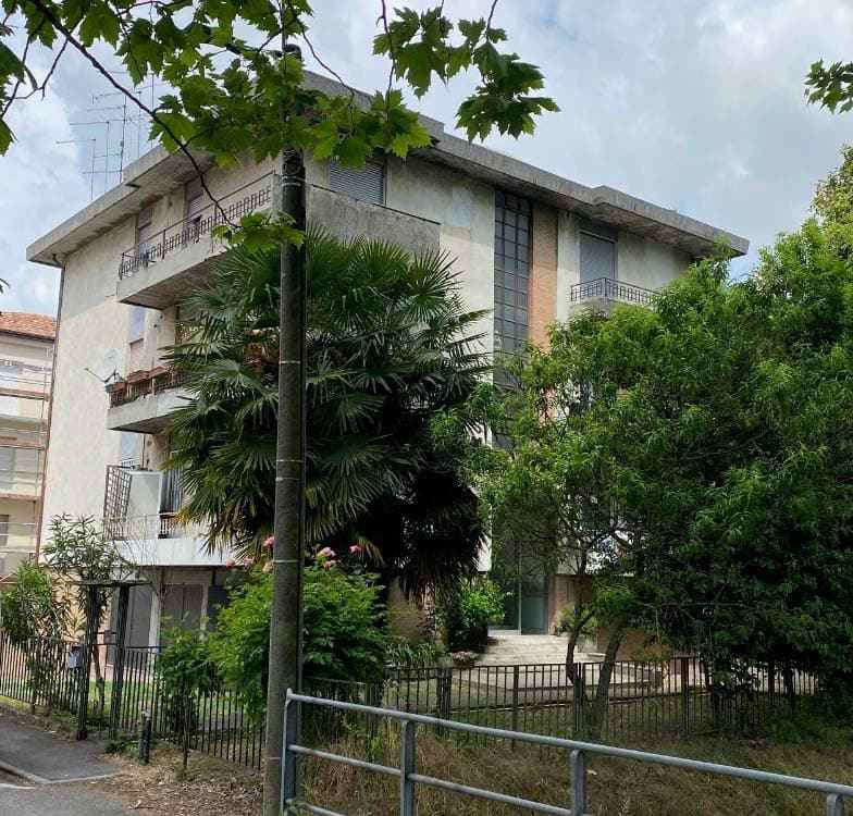 Porzione di fabbricato residenziale che si sviluppa su quattro piani fuori terra con forma regolare e con due ingressi da Via San Fermo di cui uno pedonale e uno carraio. L’unità abitativa è sita al piano primo ed è composta da un ingresso, ripostiglio, cucina abitabile, soggiorno, disimpegno, due camere, bagno e poggiolo. Al piano terra è presente il garage con ingresso da sud. Libero.