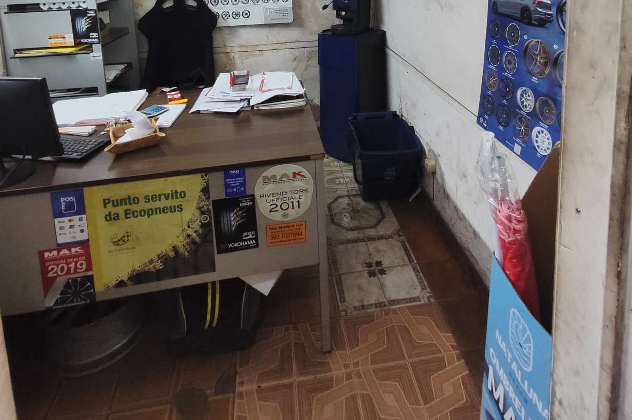 Locale artigianale attualmente adibito ad officina, sito nel quartiere "Modica Sorda", composto da un locale principale, adibito all'attività artigianale di riparazione e vendita pneumatici e della superficie di 106 mq circa, da un piccolo ufficio di circa 5 mq e bagno di 3 mq circa. Una porzione del locale (34 mq circa) è soppalcato e lo stesso viene usato come deposito. L'altezza complessiva del locale è di 4 m (3,50 m sotto trave) e di 2 m nella parte soppalcata.