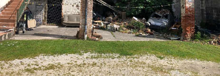 Civile abitazione su due piani fuori terra ed un piano interrato, una porzione della quale è parzialmente crollata e non agibile, composta da ingresso, cucina, soggiorno/pranzo, due stanze adibite a camera, locale centrale termica, a piano terra, bagno al piano ammezzato, tre stanze al piano primo, cantina al piano interrato, oltre ad un magazzino/garage su corpo di fabbrica distinto; superficie mq. 478 ca. c.c., oltre ad un’area scoperta pertinenziale ed esclusiva di mq. 670,00. Difformità urbanistiche
