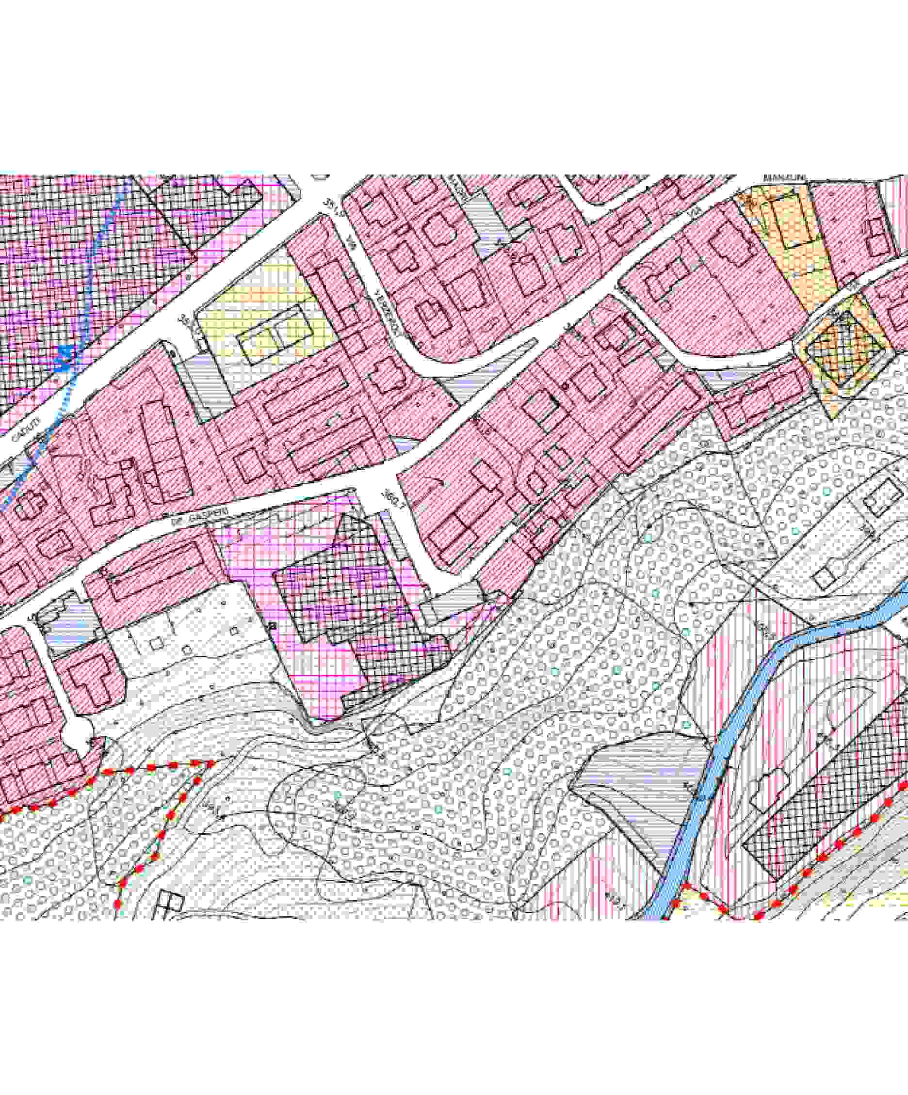 Terreni in Cene (BG) Via De Gasperi di mq 1.794,00 di cui porzione edificabile di mq 291 e i restanti ad uso strada a fondo chiuso e parcheggi. Catasto Terreni-Comune di Cene (BG)-Foglio 9 - part. 6752-6463-6333-6332-6331-6329-6328-6325-6323-6322-6320-6319. I mappali utilizzati a strada sono gravati da servitù di passo e di allacciamento a reti tecnologiche - atto Notaio Lombardo del 16/11/1998 rep57376/racc6735 a favore del complesso residenziale con accesso carrale al termine della strada a fondo chiuso