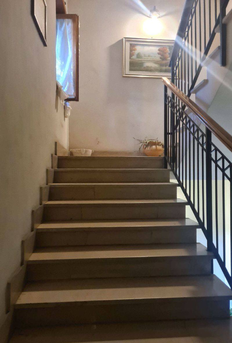 Villetta in Via Tuscolana n. 48 a Frascati (RM), facente parte di un fabbricato di maggior consistenza e così composta: giardino ad uso esclusivo, piccola cantina e ingresso con vano scala al piano terra; ingresso, soggiorno, tre camere, cucina, un bagno, due balconi ed un terrazzo al piano primo; soffitta al piano secondo. Si accede all'immobile attraverso un cancello carrabile e pedonale da area esterna adiacente, adibita a passaggio e posti auto per le attività poste al piano terra del fabbricato.