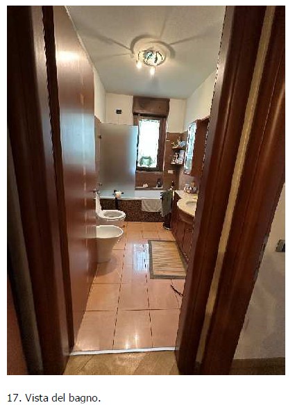 Abitazione mq 77 al piano terra di tre locali oltre servizi, terrazzo loggiato e porzione di giardino condominiale ad uso esclusivo, con cantina pertinenziale;autorimessa mq 14,80 al piano seminterrato. altezza dei locali 2.40 m;autorimessa mq 14,80 al piano seminterrato. altezza dei locali 2.40 m- vedere le precisazioni di PERIZIA.
